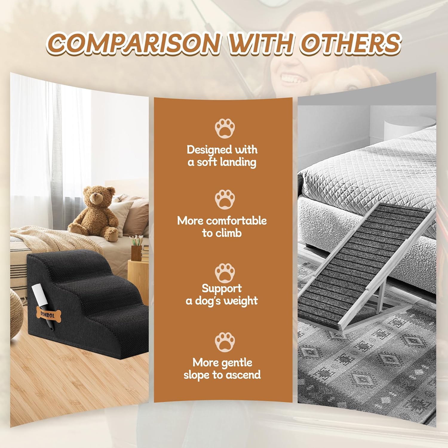 - 33D REBOUND HIGH-DENSITY FOAM: Our 33D foam delivers 63% faster rebound vs standard foam with enhanced weight capacity. Perfect for puppies, senior dogs, and pets recovering from surgery to access beds/couches safely. Dual-purpose as cat stairs for multi-pet households