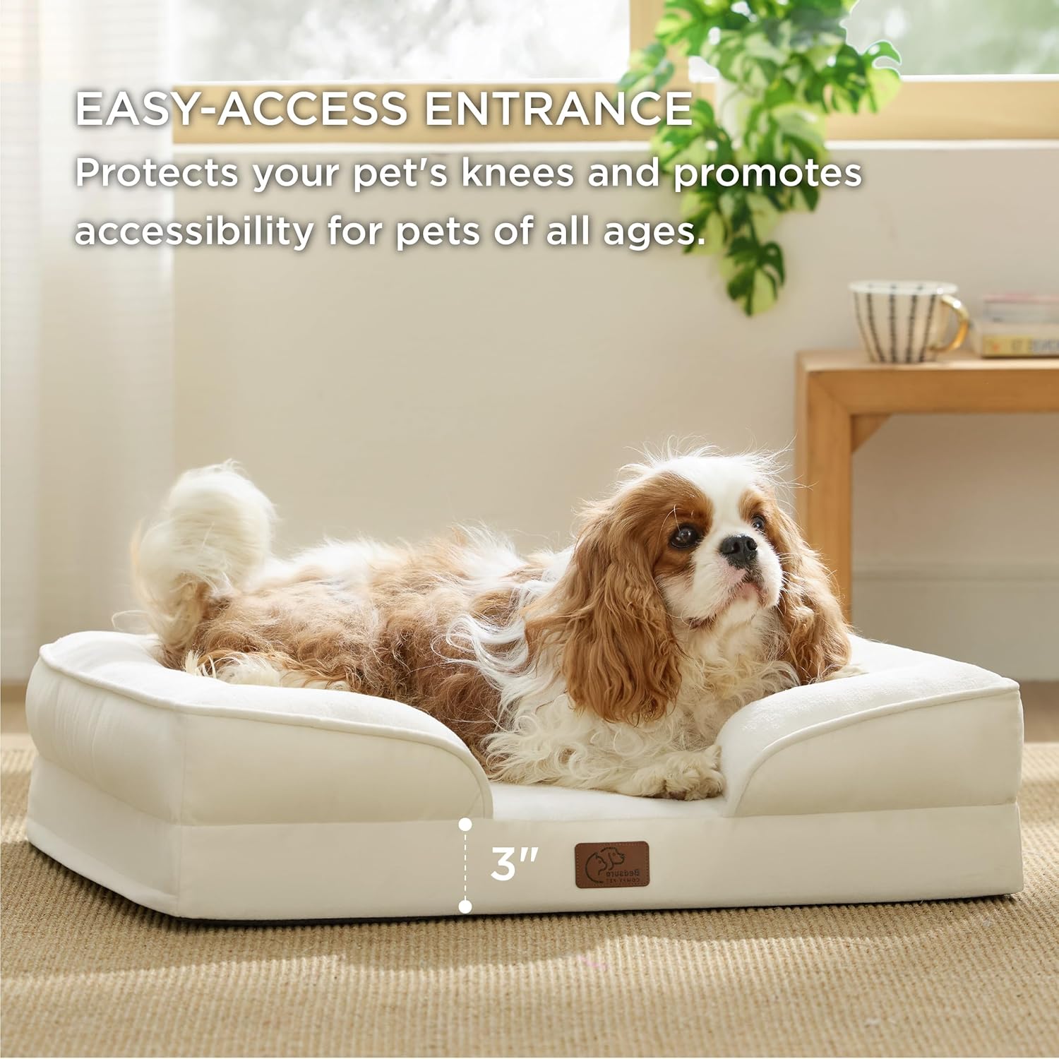 - Enhanced Comfort: The 4-sided bolster design promotes ultimate comfort and security, offering your pet a variety of cozy positions to snuggle. The cushioned bolster shape is deeply filled to support your pet’s head and neck for a more restful sleep. And the lowered entrance protects your pet's knees and promotes accessibility.