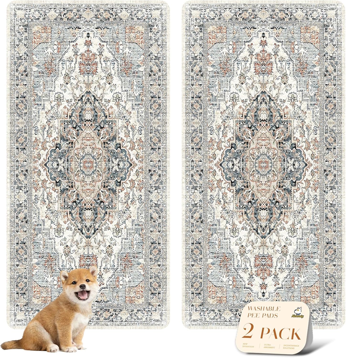 nunubaby Washable Pee Pads for Dogs, Stylish, Non-Slip and Leak-Proof Pee Pads. Reusable Potty Pads for Dogs for Crates and Floors.(Beige/Multi, 36" x72" )