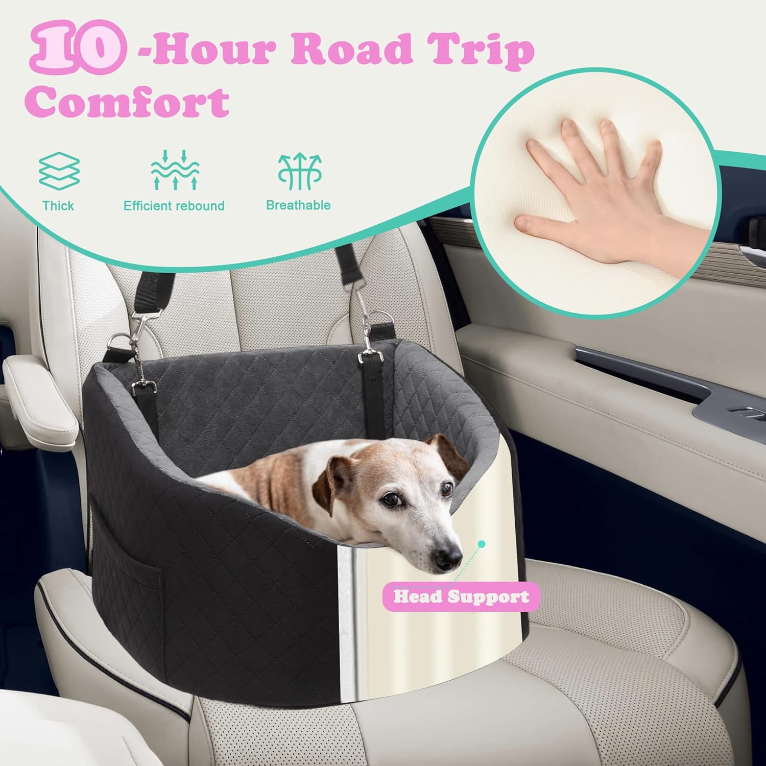 Dog Car Seats for Small Dogs Safety Stable Pet Bed for Car with Seatbelt Up to 30lbs Anti-Collapse for Travel