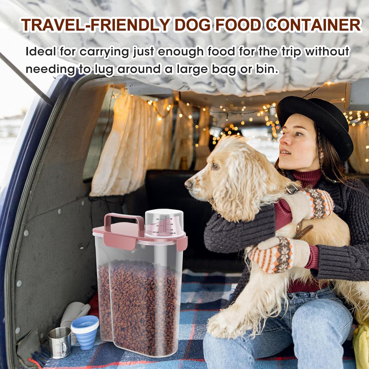 - Mess-Free Cat Food Dispenser: The travel dog food container features a big spout makes it a breeze to dispense your pet food even large particles of dog treat. Its ergonomic and frosted design offers a comfortable grip for easy pouring