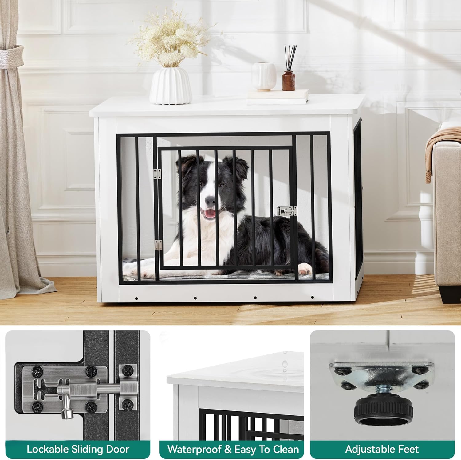 - 2-in-1 Design: The large dog kennel serves as a functional side table that also doubles as a cozy resting space for your pet and stylish furniture piece; Its innovative design saves space and adds a unique element to your home decor, blending utility and style