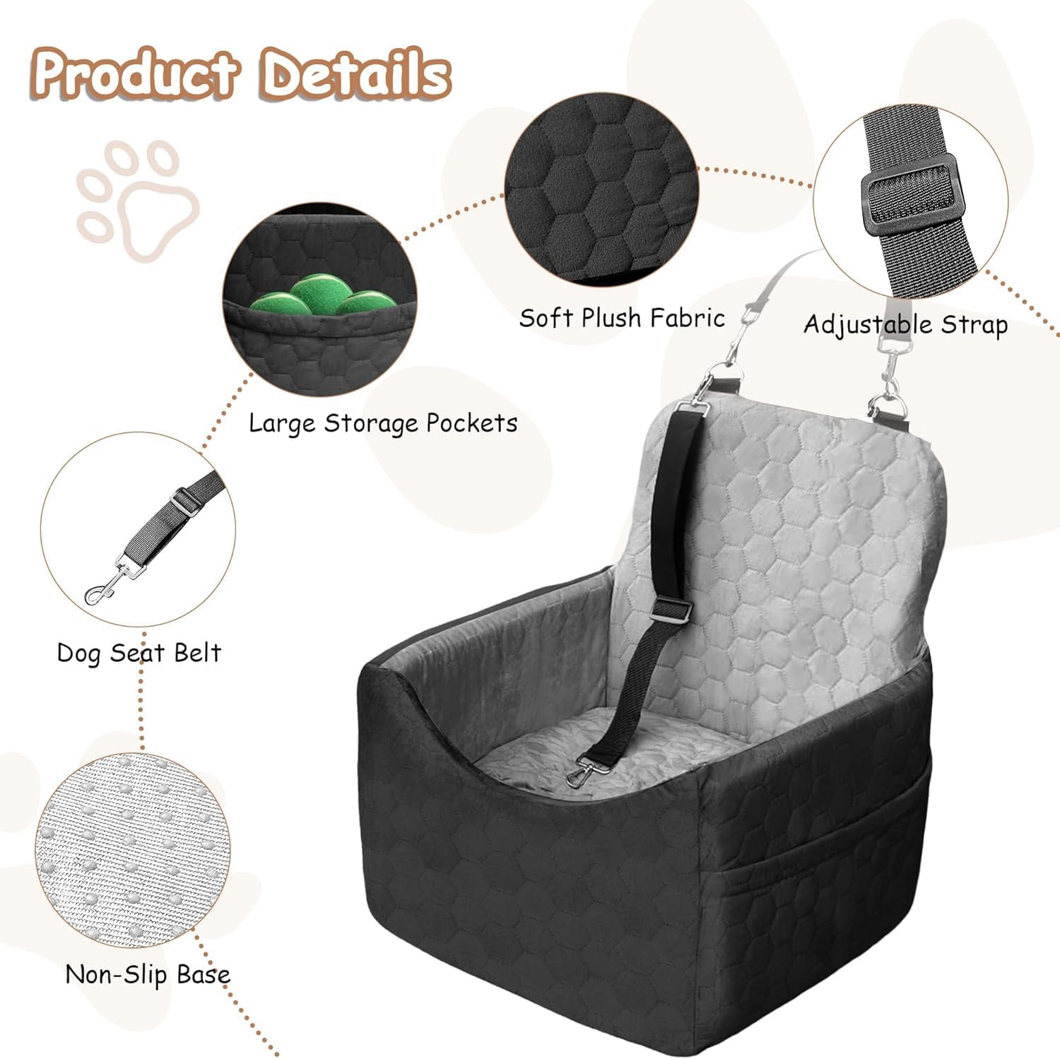 - 【Safety First for Stress-Free Travel】: Equipped with reinforced fixing straps and a non-slip base, this dog booster seat stays securely in place during drives. The built-in leash keeps your pet safely in the seat, giving you peace of mind on the road