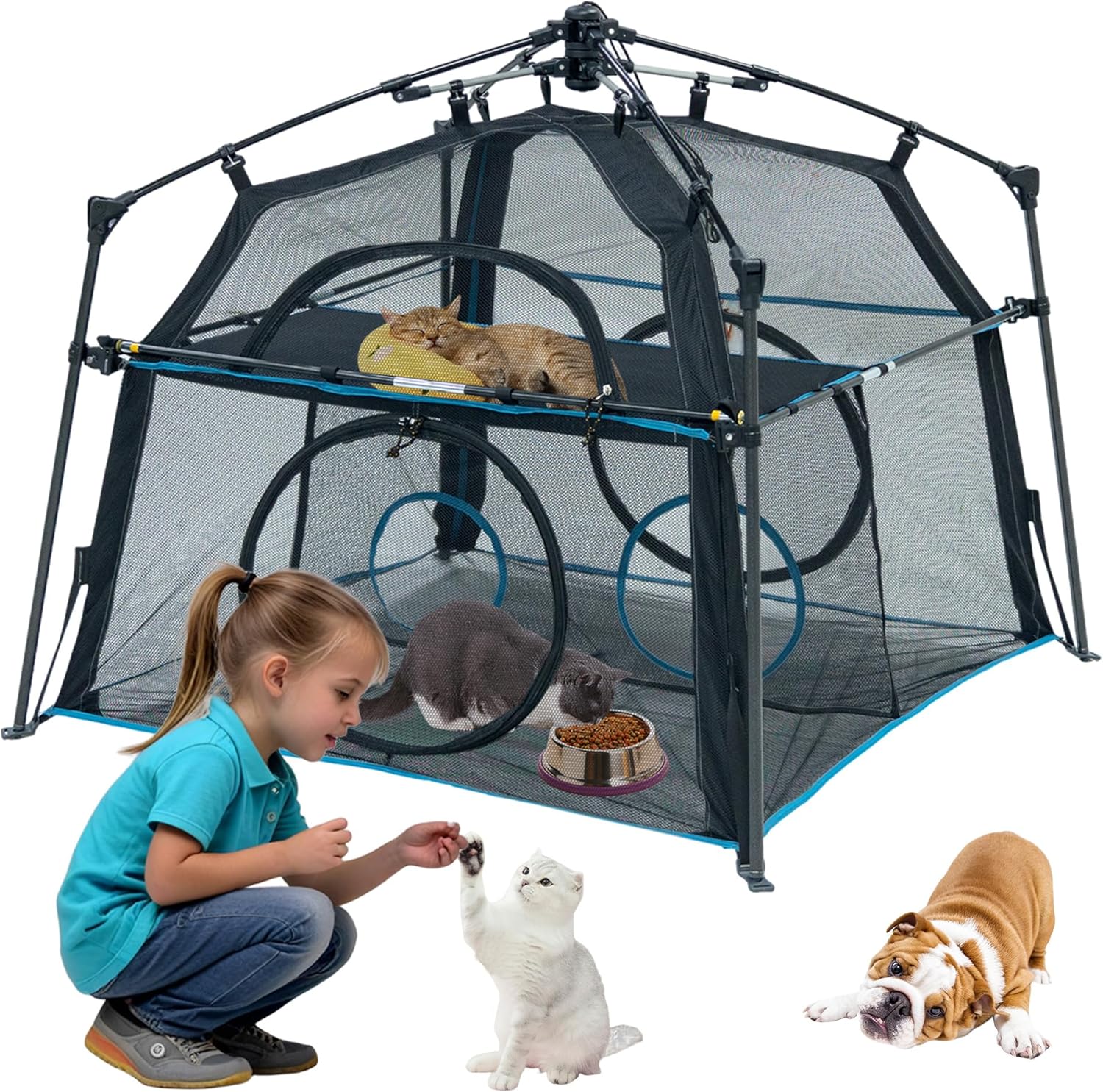 Cat Enclosure and Cat Tower Tent with Two Styles of canopiesfor Indoor and Outdoor,X-Large Outdoor Catio, Cat Tent,Portable and Foldable,Two Doors Design can Assemble More Shapes (Patented)