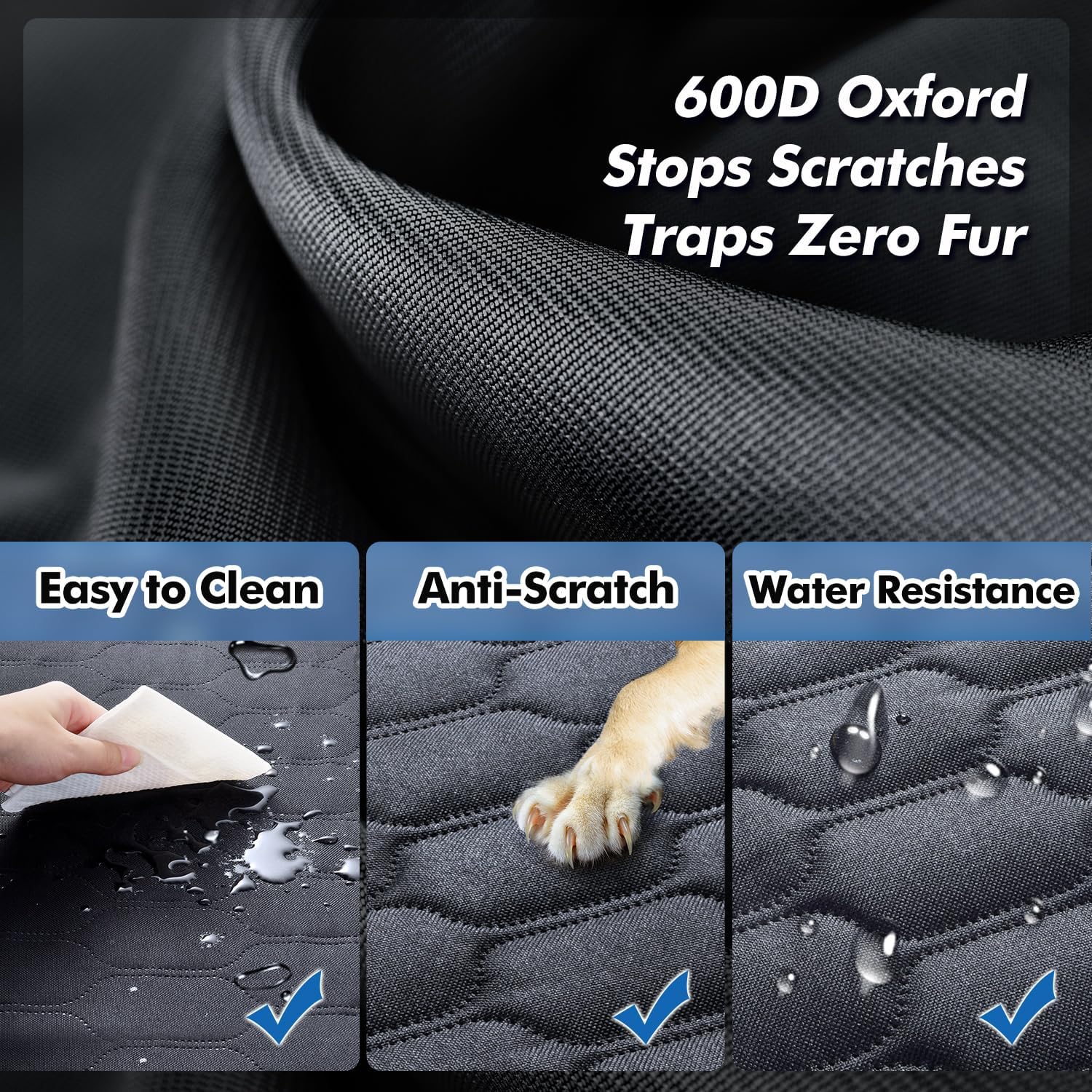 - 600D Oxford – Stops Scratches, Traps Zero Fur:Our 600D Oxford pet car seat cover doesn’t just protect – it stops scratches dead and traps 100% fur (yes, even your Husky’s shedding)