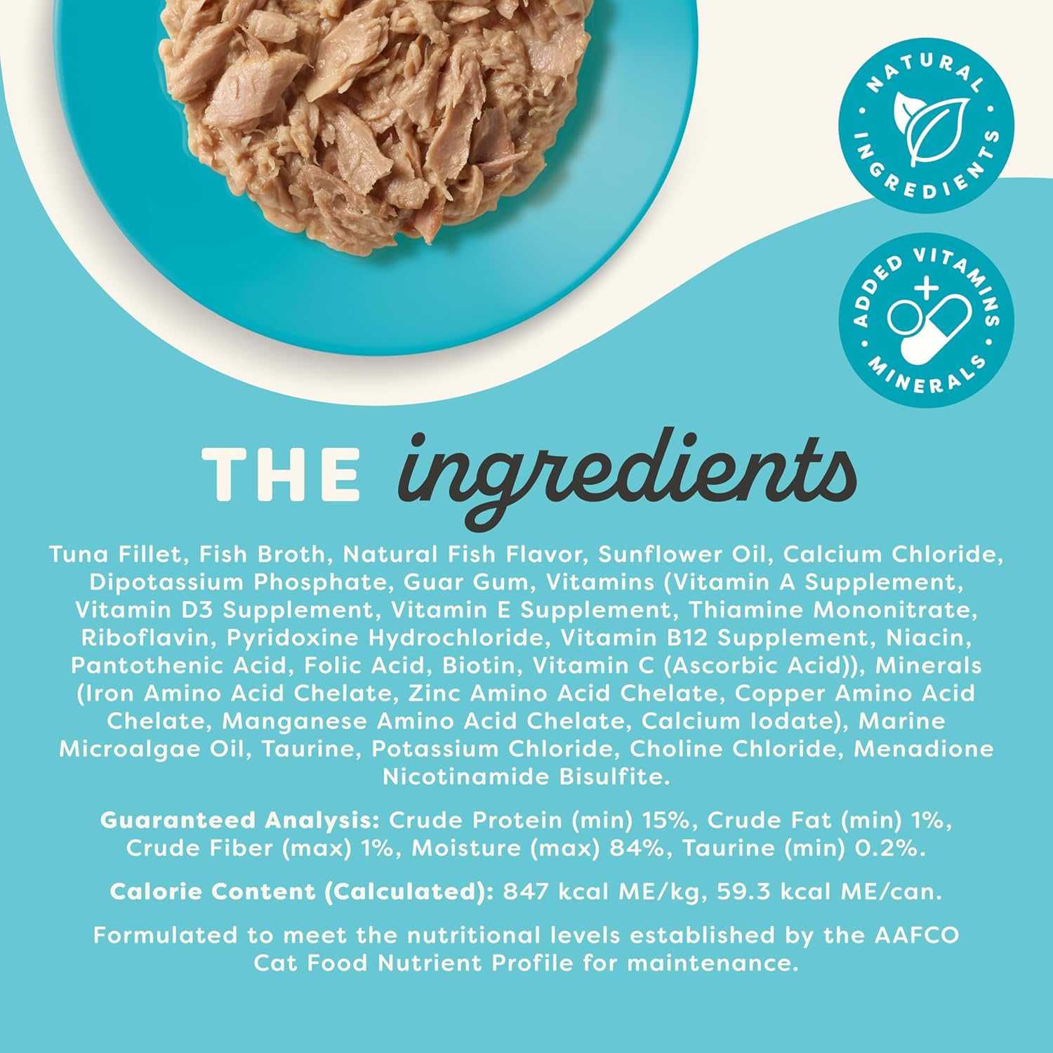 Applaws Vitality Wet Cat Food in Broth, Natural Canned Cat Food, Wet Food for Cats with Added Vitamins and Minerals, Grain Free, Carrageenan Free, Tuna Fillet in Broth (24 Count, 5.5oz Cans)