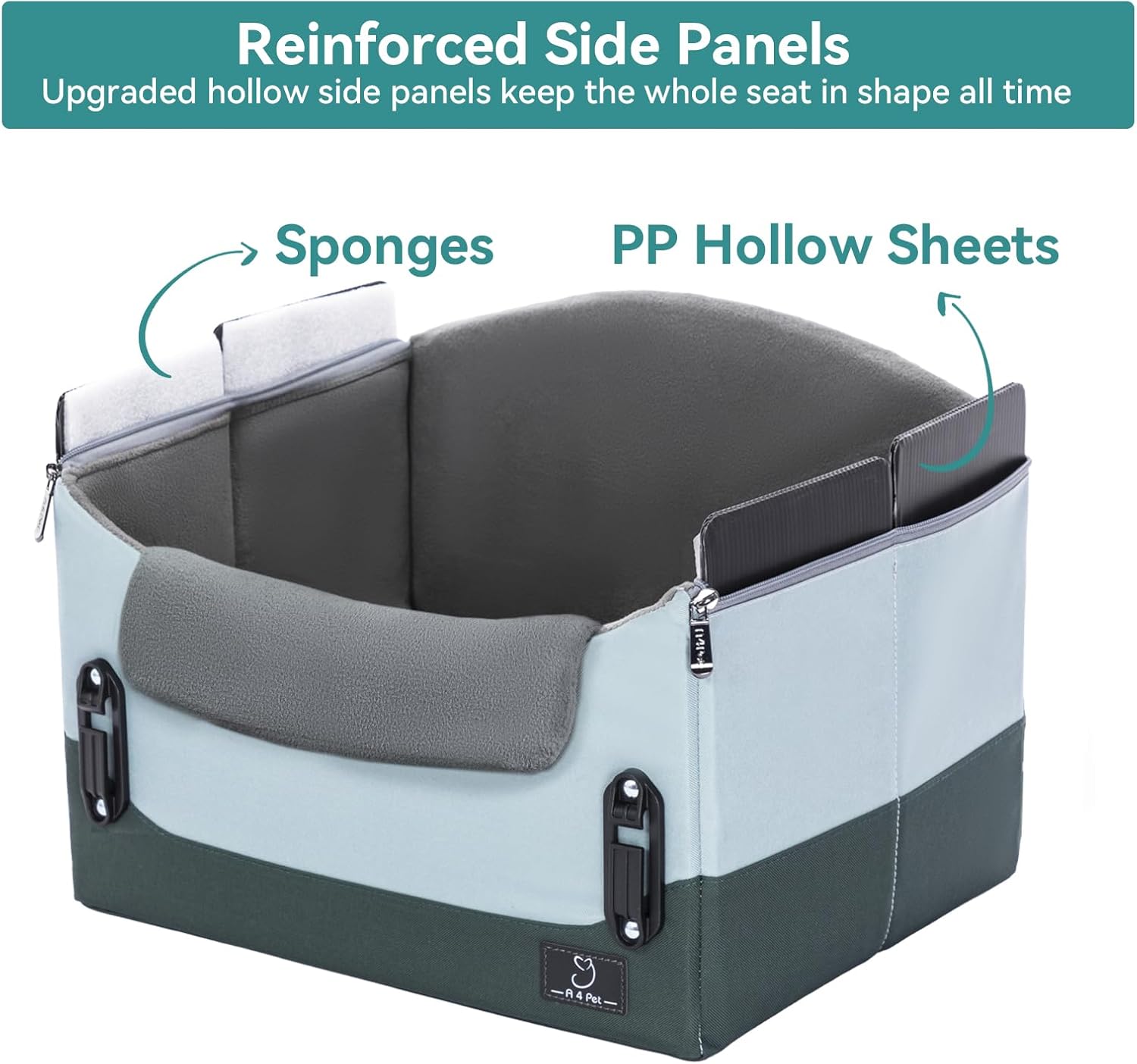 A 4 Pet Dog Car Seats for Small Dogs, Booster Car Seat with Patent Buckles & Clip-On Safety Leash, Pet Seat for Puppy Small Dogs Cats Under 25 Lbs, Green