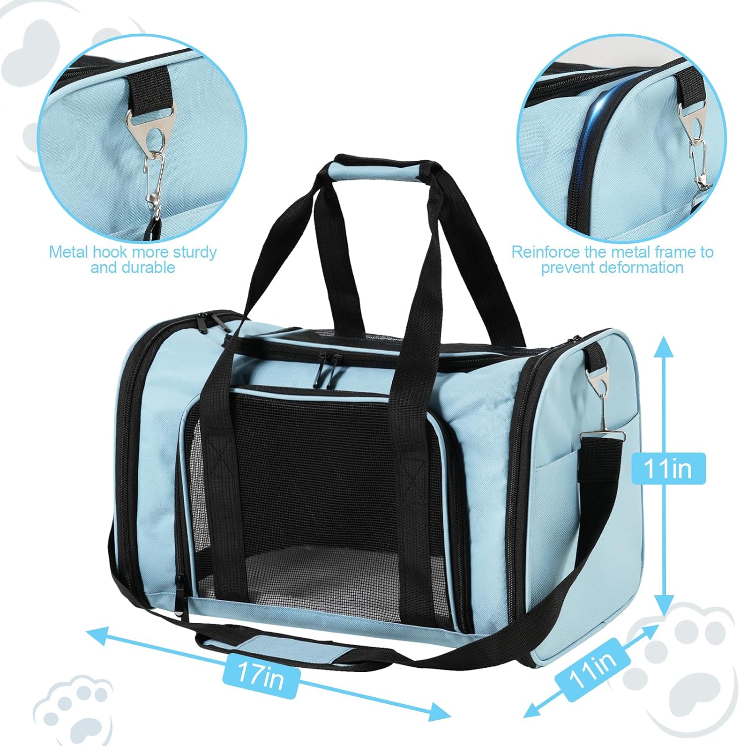 Roaringkitty Travel in Style: Portable Pet Carrier for Small Pets up to 15 Lbs- Airline Approved, Collapsible & Comfortable cat/Puppy Soft Sided Bag (Blue)