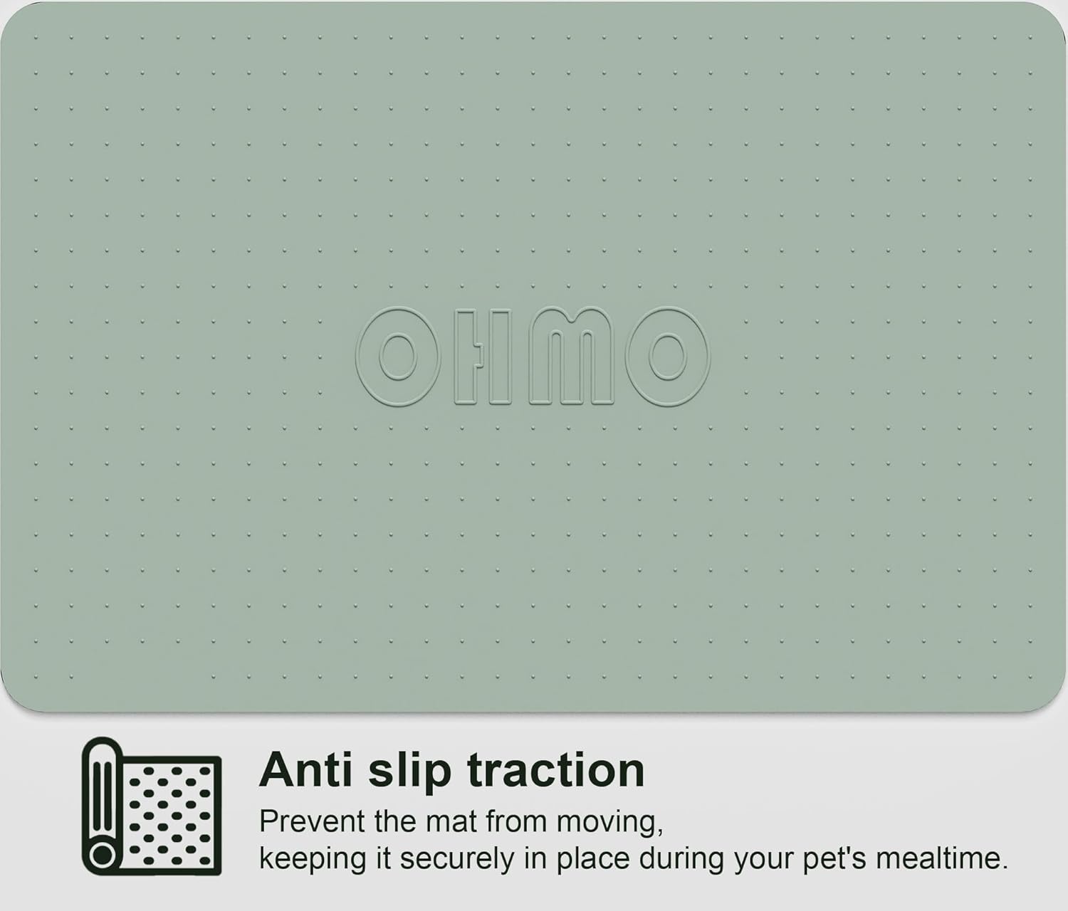 OHMO Dog Food Mat, Silicone Waterproof Cat Food Mat, Non-Skid Spill Proof Pet Feeding Mat for Food and Water, Easy to Clean Dog Placemat(Sage Green, 18.9" x 11.8")