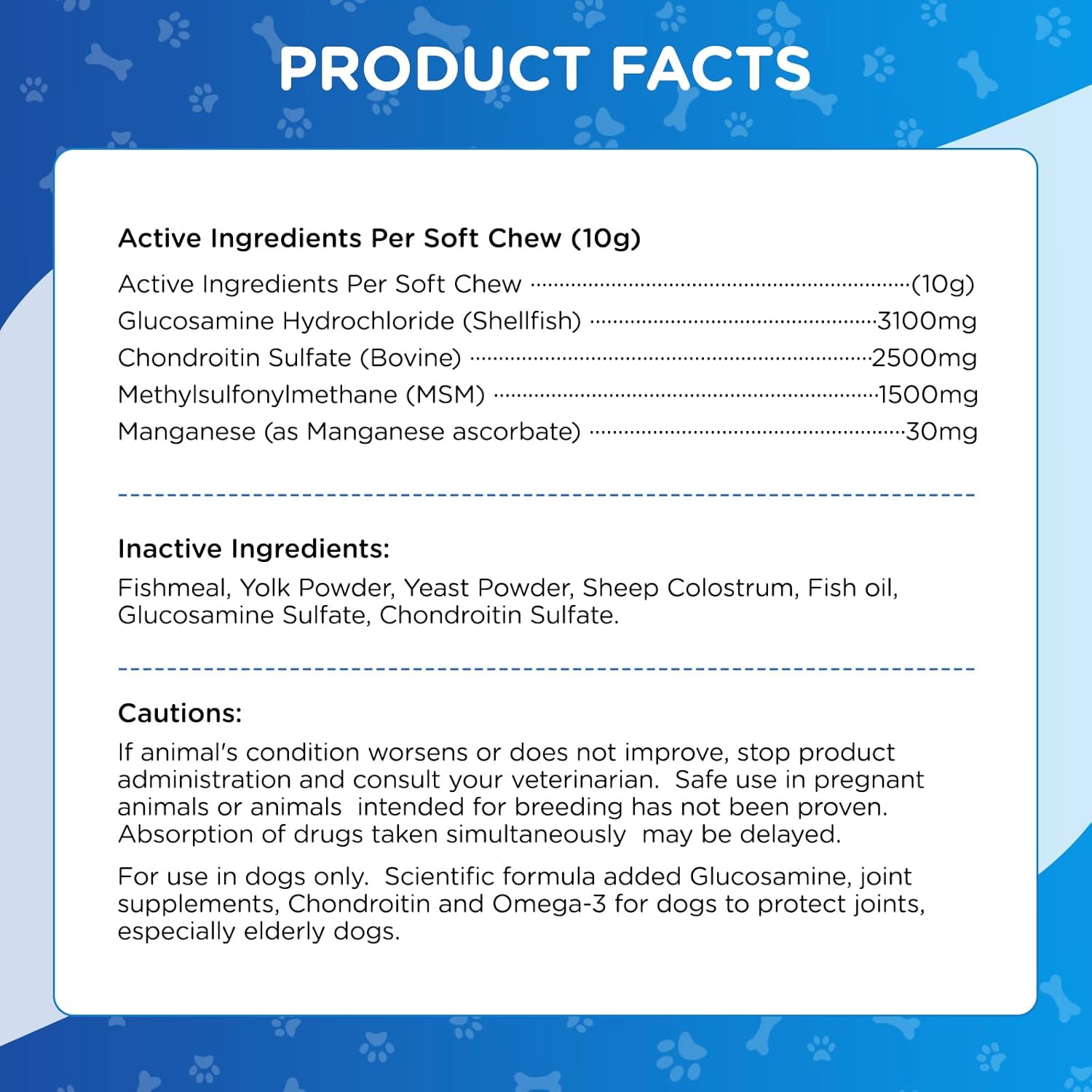 - Healthy Cartilage & Joint Function: The glucosamine and chondroitin in these chewable tablets support the repair and maintenance of healthy cartilage, ensuring your dog's joints stay strong and flexible