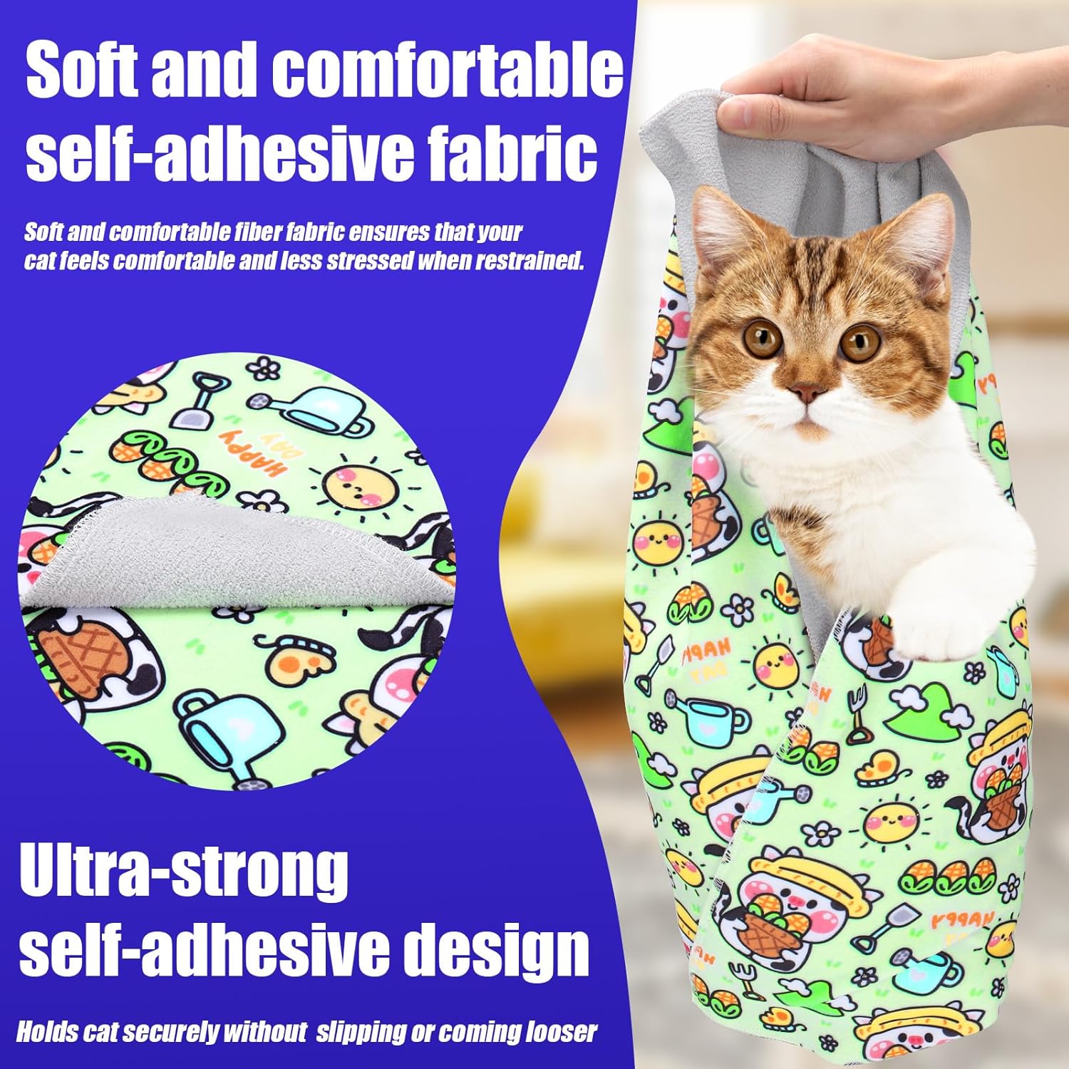 - STURDY & DURABILITY, NOT EASY TO FALL OFF: The cat wrap for cutting nails is made of self-adhesive polymer material, the new high-quality self-adhesive design can be tightly adhered to the cat's body to prevent the cat from breaking free, the fine fiber material is not easy to be bitten and scratched, and it is stronger and more durability compared to other cat bags and kitty pouches.