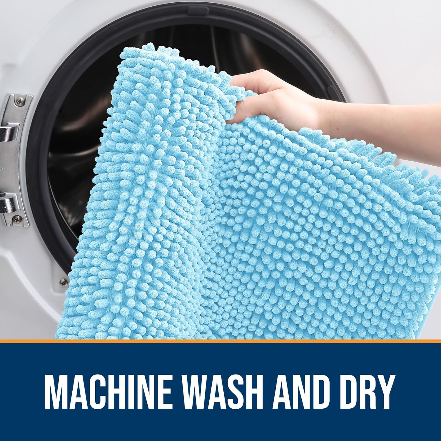 OLANLY Dog Door Mat for Muddy Paws 47x17, Absorbs Moisture and Dirt, Absorbent Non-Slip Washable Doormat, Quick Dry Chenille Mud Mat for Dogs, Entry Indoor Entryway Carpet for Inside Floor, Blue