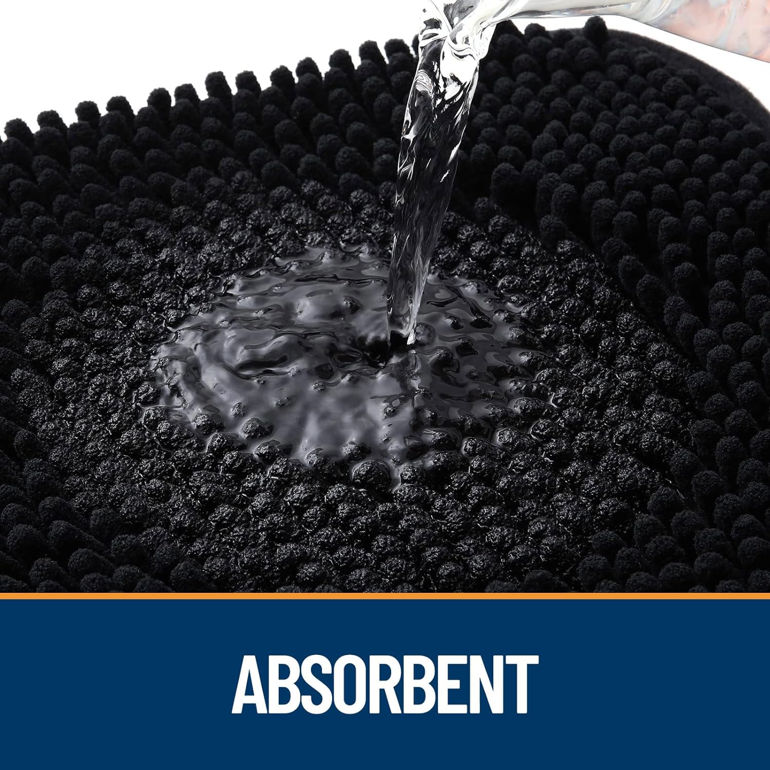 OLANLY Dog Door Mat for Muddy Paws 54x24, Absorbs Moisture and Dirt, Absorbent Non-Slip Washable Doormat, Quick Dry Chenille Mud Mat for Dogs, Entry Indoor Entryway Carpet for Inside Floor, Black