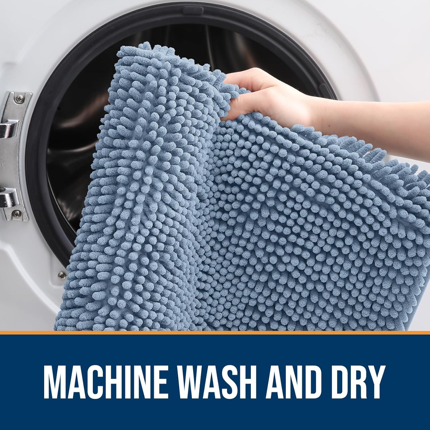 OLANLY Dog Door Mat for Muddy Paws 47x20, Absorbs Moisture and Dirt, Absorbent Non-Slip Washable Doormat, Quick Dry Chenille Mud Mat for Dogs, Entry Indoor Entryway Carpet for Inside Floor, Airy Blue