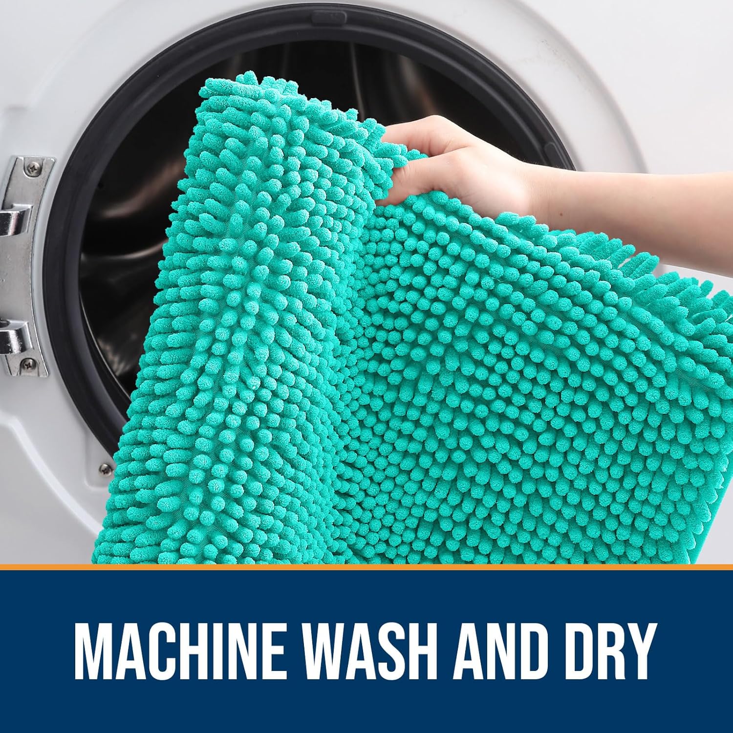 OLANLY Dog Door Mat for Muddy Paws 47x17, Absorbs Moisture and Dirt, Absorbent Non-Slip Washable Doormat, Quick Dry Chenille Mud Mat for Dogs, Entry Indoor Entryway Carpet for Inside Floor, Teal