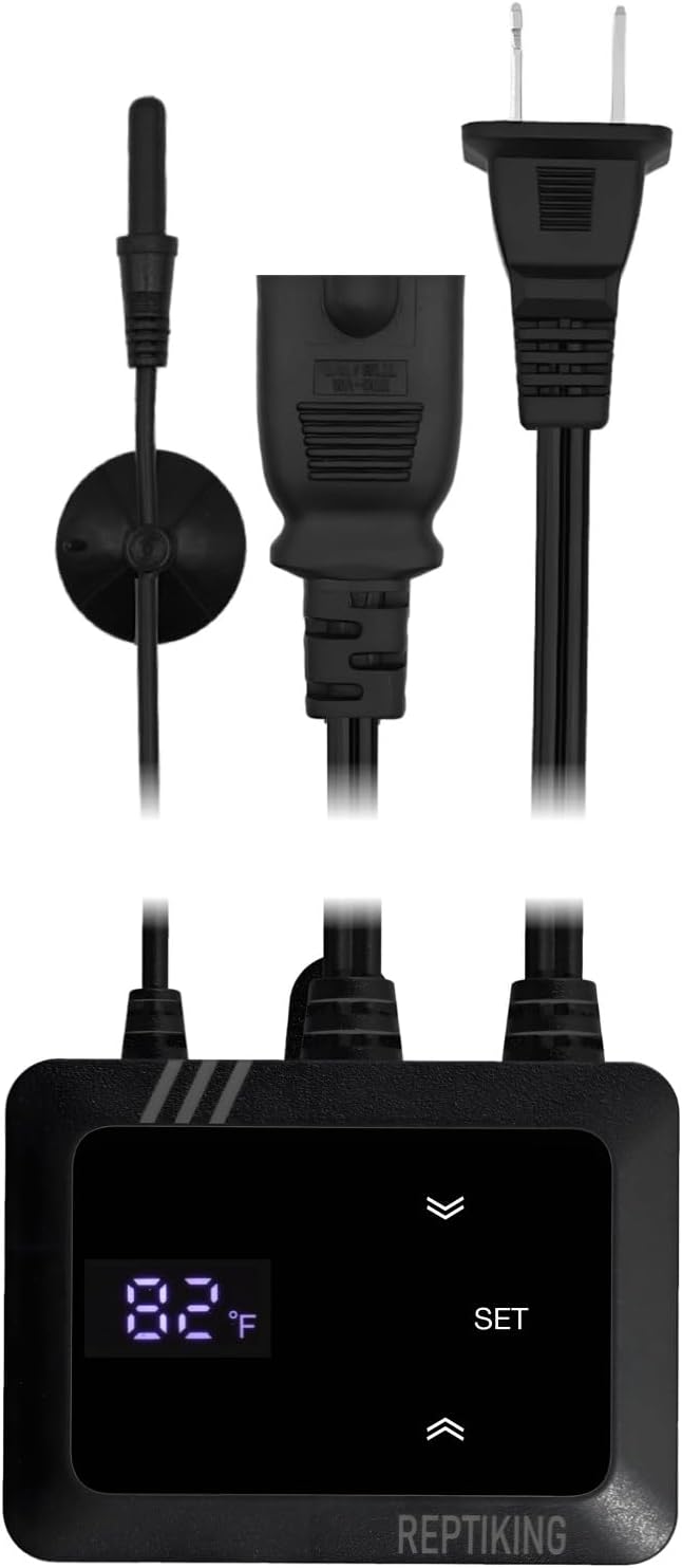 - 68℉ - 122℉ or 20°C -50°C can be set in a range that meets the temperature settings of most reptiles in their natural habitat. Maximum load of 200W heat lamp, UL certified power cord is safer and more reliable.
