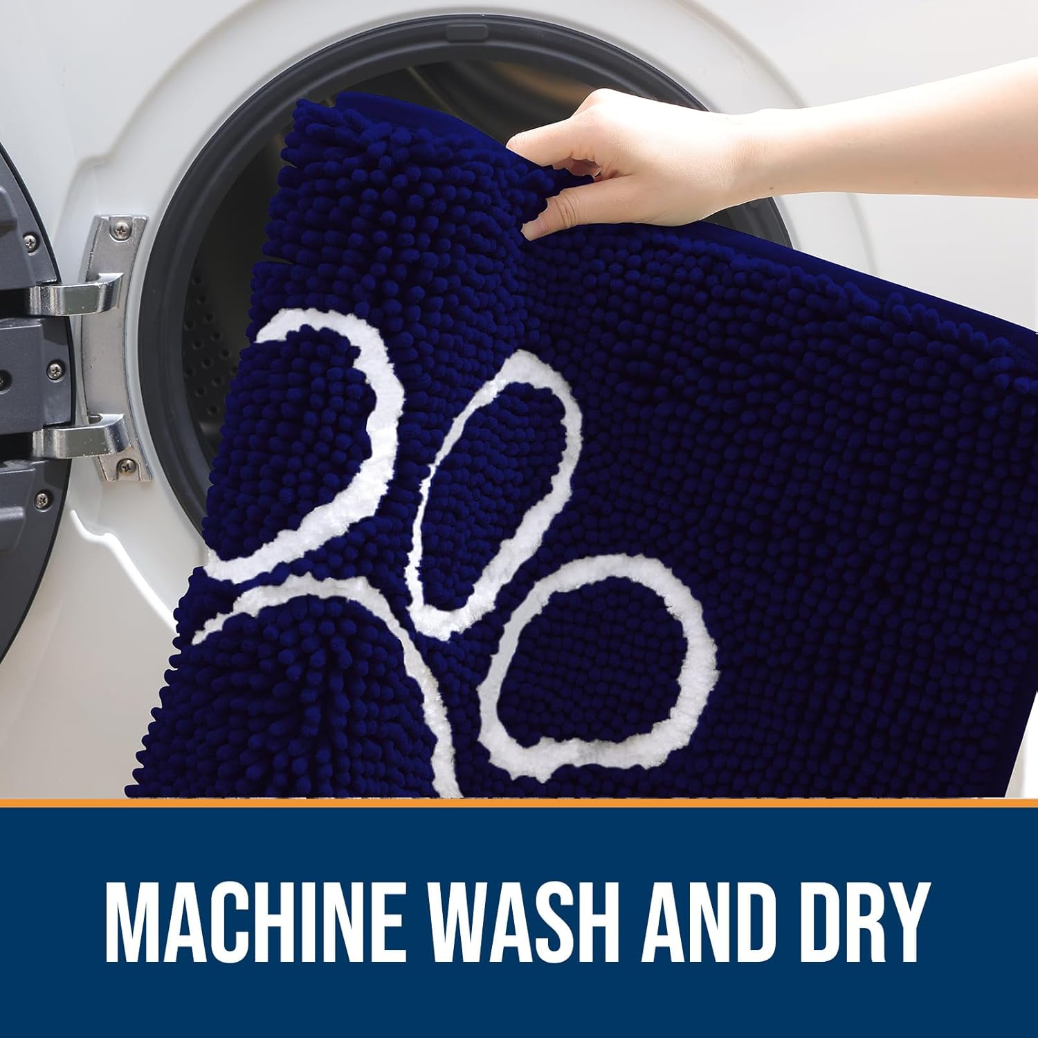 OLANLY Door Mat for Muddy Dog Paws 30x20, Ultra Absorbent Chenille Mud Doormat with Paw Print Design, Non-Slip Washable Doormat for Indoor Entryway, Quick-Dry Pet Bed Mats for Dirty Dogs, Navy Blue