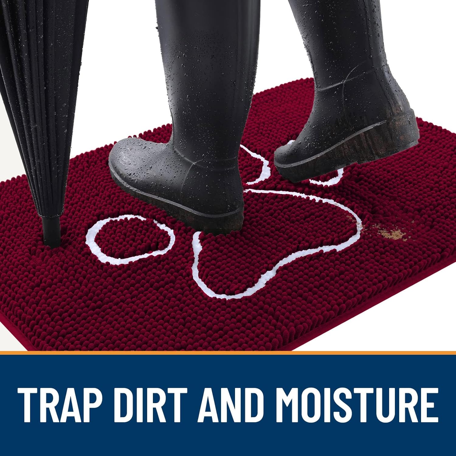 OLANLY Door Mat for Muddy Dog Paws 48x30, Ultra Absorbent Chenille Mud Doormat with Paw Print Design, Non-Slip Washable Doormat for Indoor Entryway, Quick-Dry Pet Bed Mats for Dirty Dogs, Burgundy