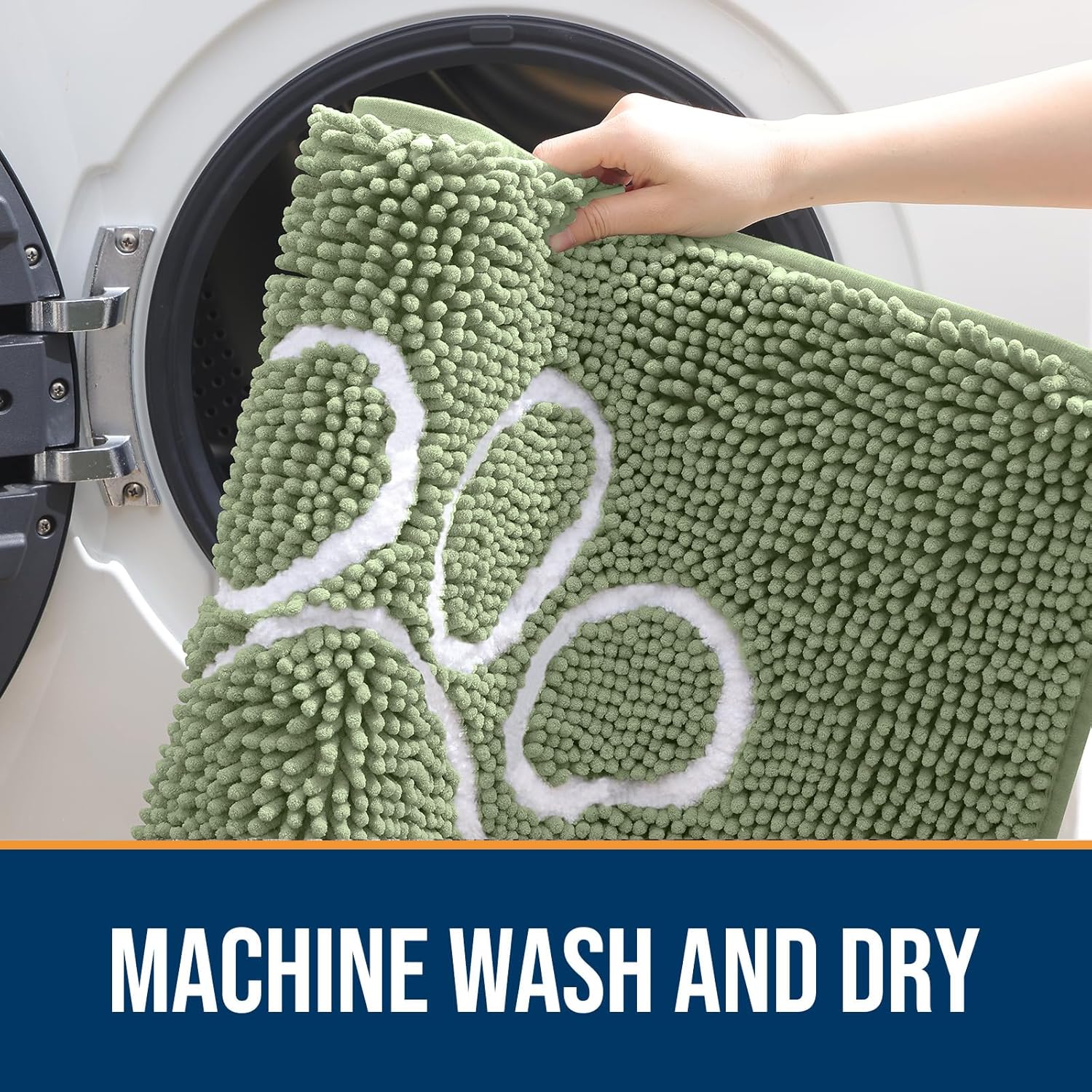 OLANLY Door Mat for Muddy Dog Paws 48x30, Ultra Absorbent Chenille Mud Doormat with Paw Print Design, Non-Slip Washable Doormat for Indoor Entryway, Quick-Dry Pet Bed Mats for Dirty Dogs, Sage Green