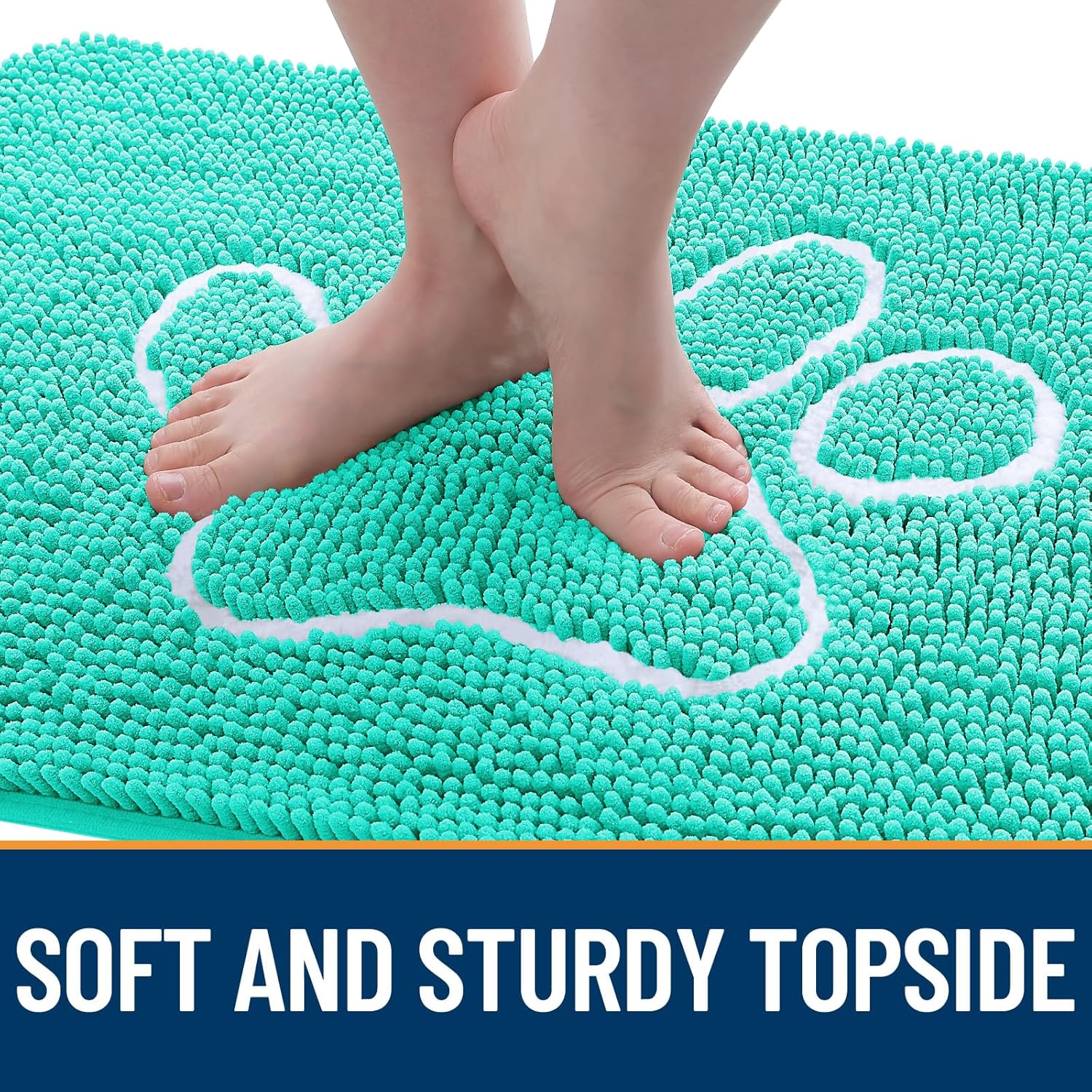OLANLY Door Mat for Muddy Dog Paws 59x35, Ultra Absorbent Chenille Mud Doormat with Paw Print Design, Non-Slip Washable Doormat for Indoor Entryway, Quick-Dry Pet Bed Mats for Dirty Dogs, Teal