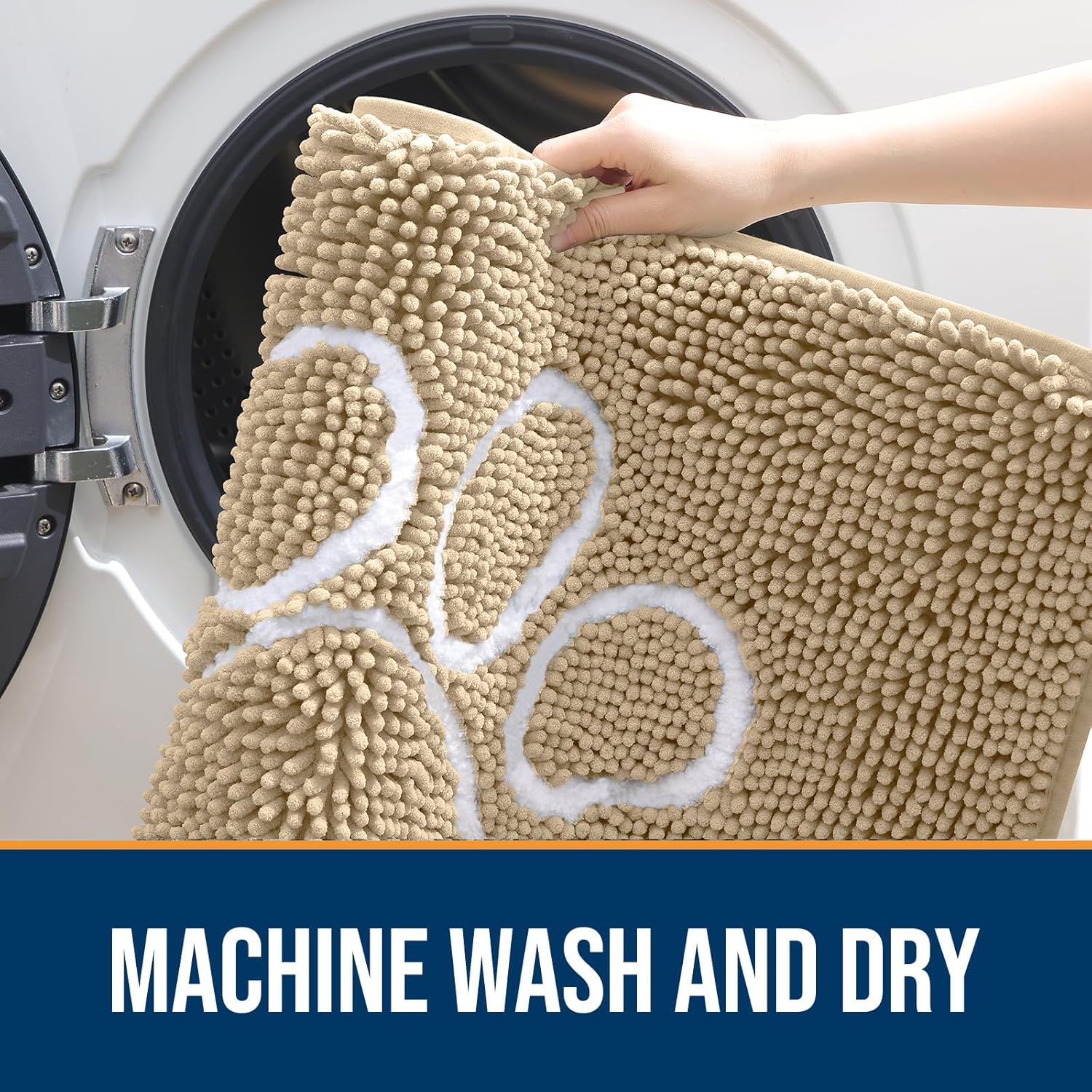 OLANLY Door Mat for Muddy Dog Paws 59x24, Ultra Absorbent Chenille Mud Doormat with Paw Print Design, Non-Slip Washable Doormat for Indoor Entryway, Quick-Dry Pet Bed Mats for Dirty Dogs, Beige