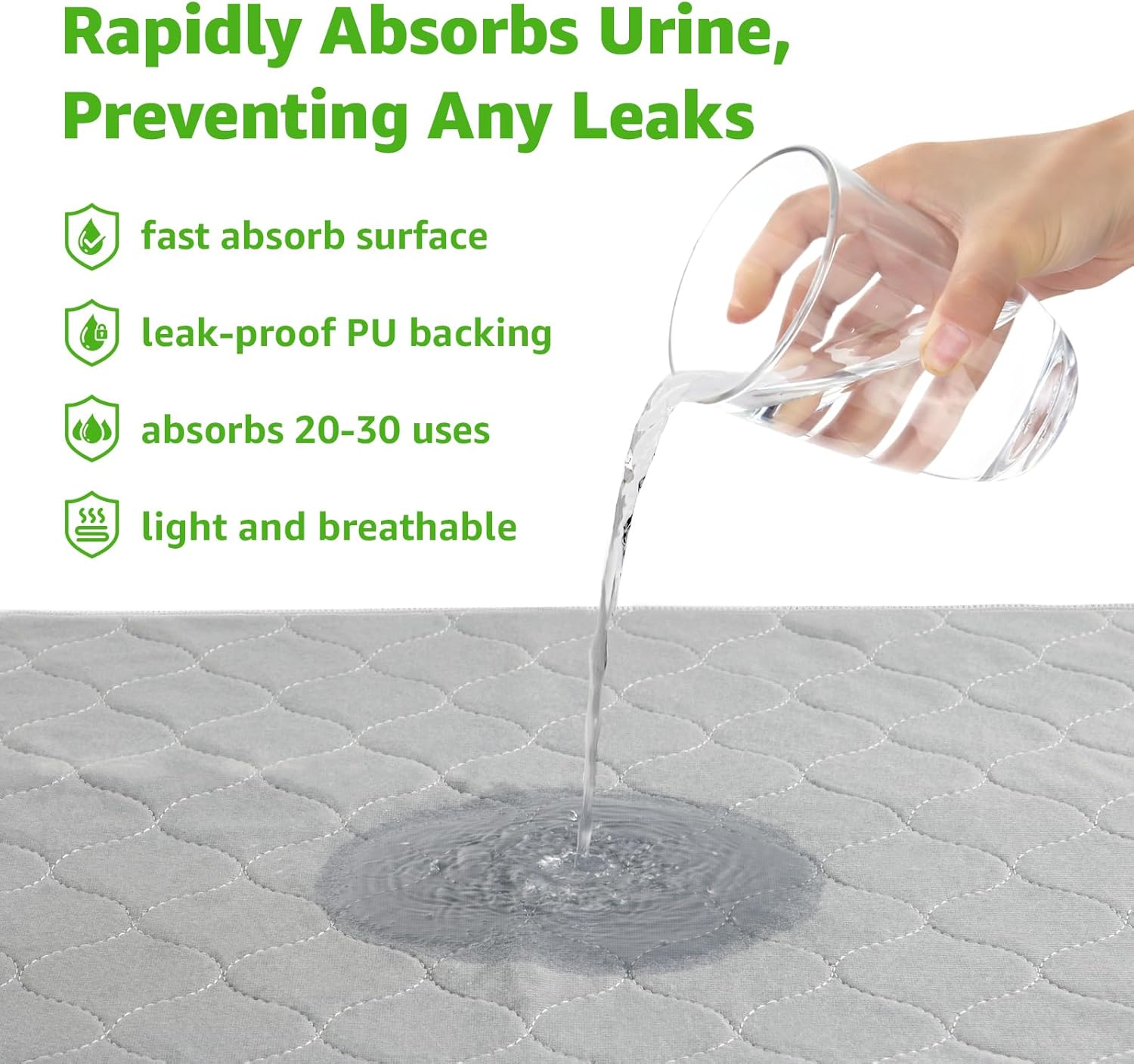 - WASHABLE DOG TRAINING PEE PADS: Optimal absorption of urine to prevent urine from damaging the floor. Reusable puppy pads not only save money, but also reduce the waste caused by disposable urine pads. It’s sturdy and completely machine-washable. The best choice for pet parents, no longer need to deal with the mess of disposable supplies all day!