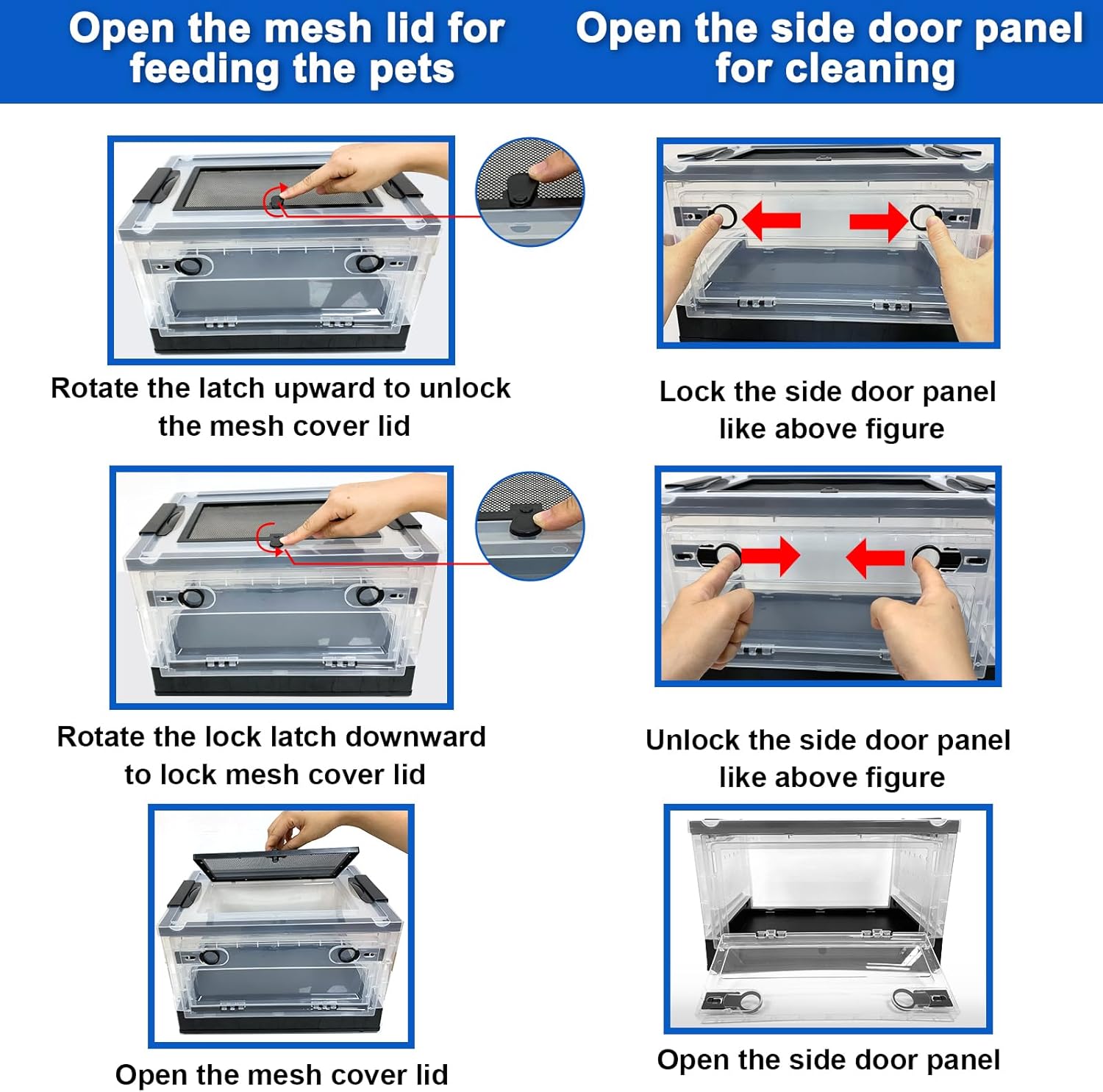 - 【Innovate design for pet health and free breathing】Our reptile and small animal cage for breeding house has top breathable panel mesh lid,multiple air vents on both side and air vents on bottom for better air circulation and flow which let the pet in product have free breathing