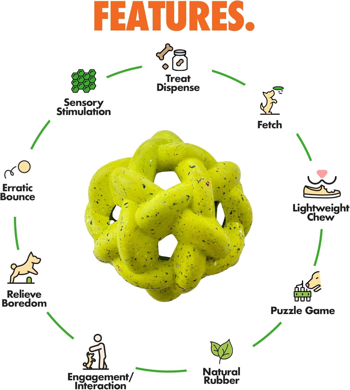 - TRY ALL OUR DOG TOYS: Expand your pup’s toy collection with our full lineup of engaging dog toys! In addition to this dog treat dispenser toy, we offer a variety of fun options, including dumbells, tug of war ropes, dog treat dispensers, balls, bones, and donuts. Each toy is designed for different types of play, helping to keep your dog entertained with new and exciting challenges.