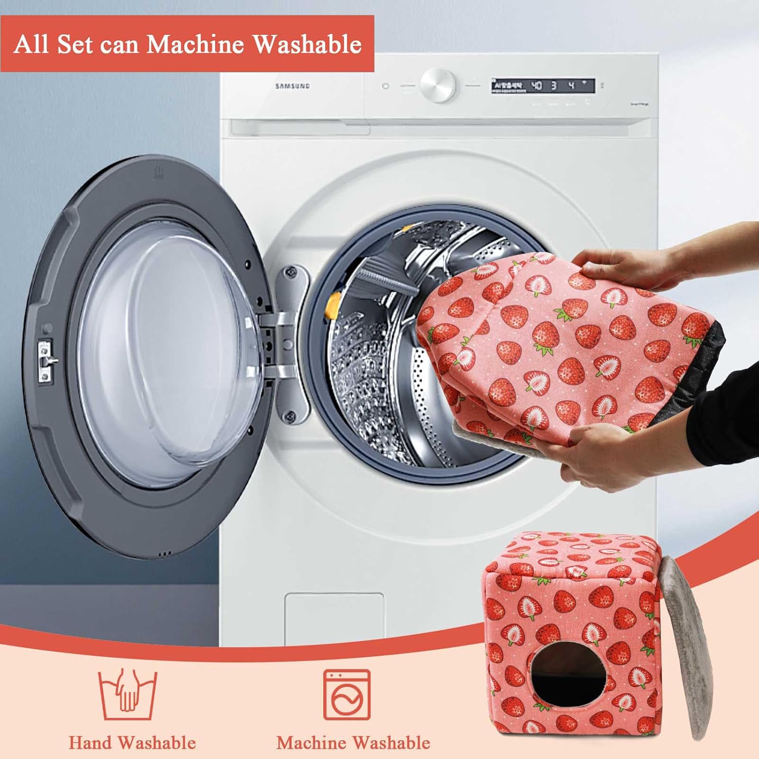 - Spacious & Stylish Square Design--Measuring 11.02” x 11.02” x 9.84” (28cm x 28cm x 25cm), this square hideout offers ample room for guinea pigs, hamsters, rabbits, and other small pets to move freely. The vibrant strawberry pattern and bright colors add a cheerful, decorative touch to any cage or home space, blending seamlessly with modern decor