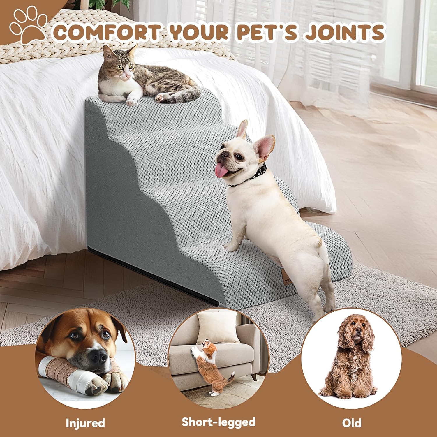 - Ideal Choice for Furry Friends Indoor: Pet owners, pay attention! If your furry friend is elderly, short-legged, injured, or a small cat or dog, Zerbuger Dog Stair is a must-have item for you. It's extremely suitable for indoor use and works great in living rooms or bedrooms. Small pets love it, and it's very useful when taking care of pets. With our stair, pets can easily and safely climb up and down high places like sofas, chairs, beds. Our pet step can also teach dogs to climb and allows pets to reach the window to enjoy the view.