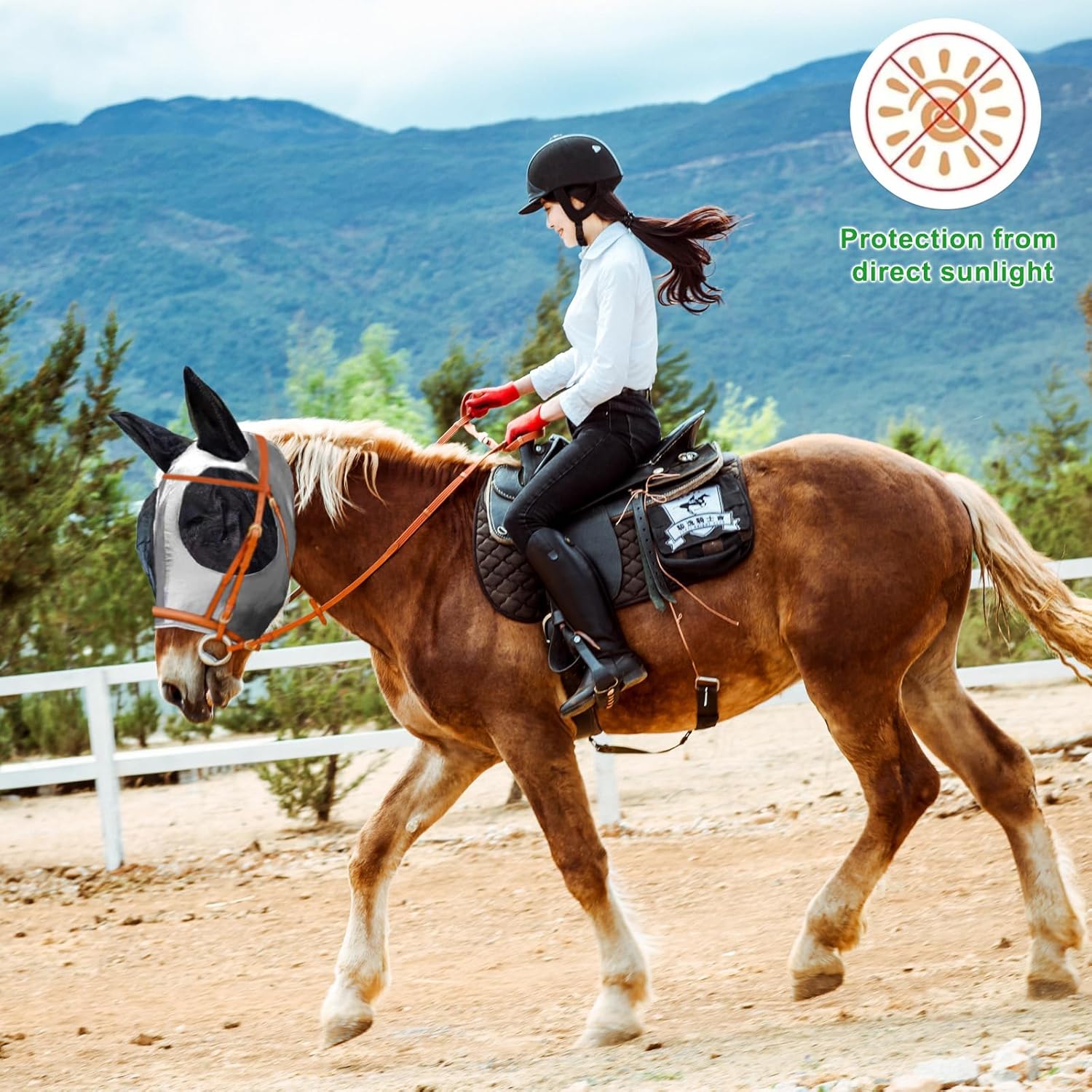 - VERSATILE DESIGN: Stretchy and comfortable horse fly mask available in six vibrant colors - pink, blue, black, gray, red and purple, perfect for protecting horses from insects and sun