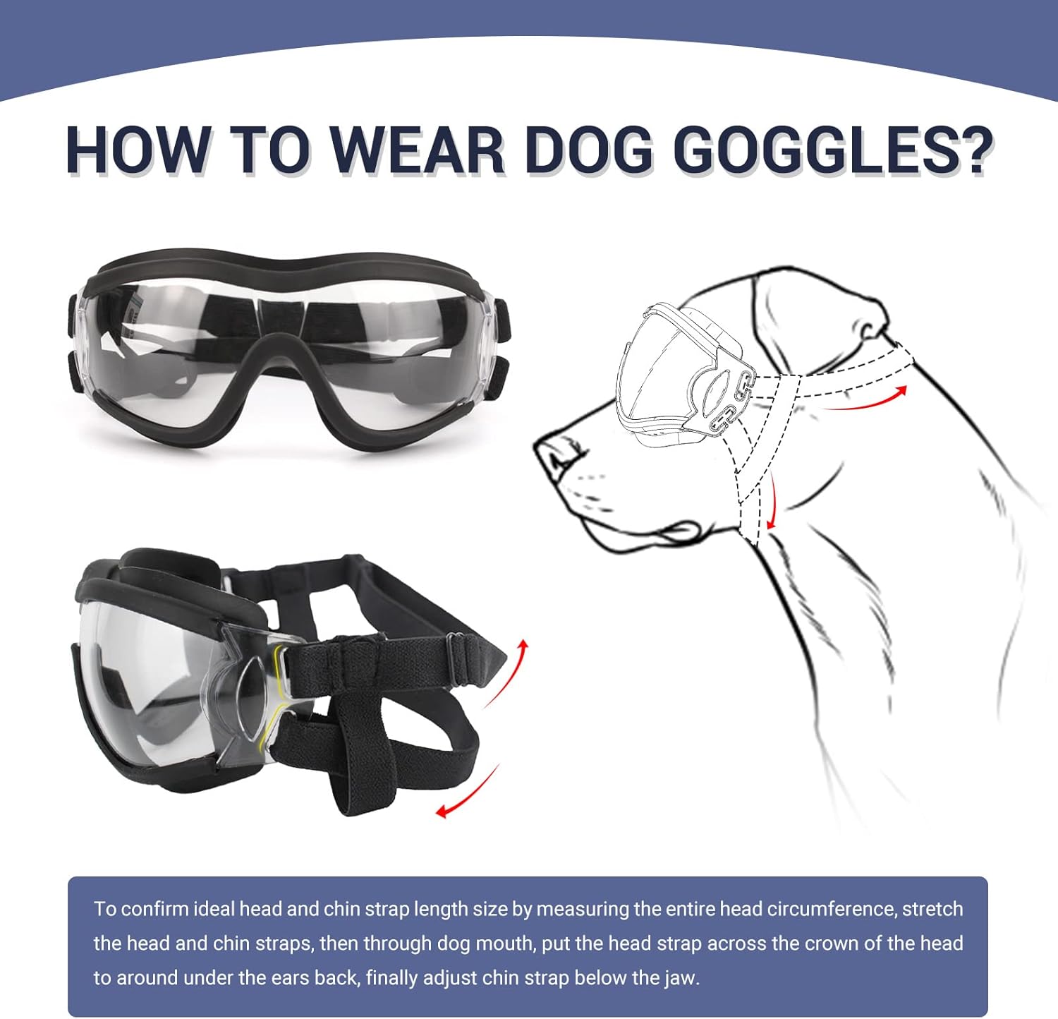 Dog Goggles Anti-UV Windproof Dog Sunglasses Eye Protection for Medium Large Dogs with Adjustable Straps/Clear Lense