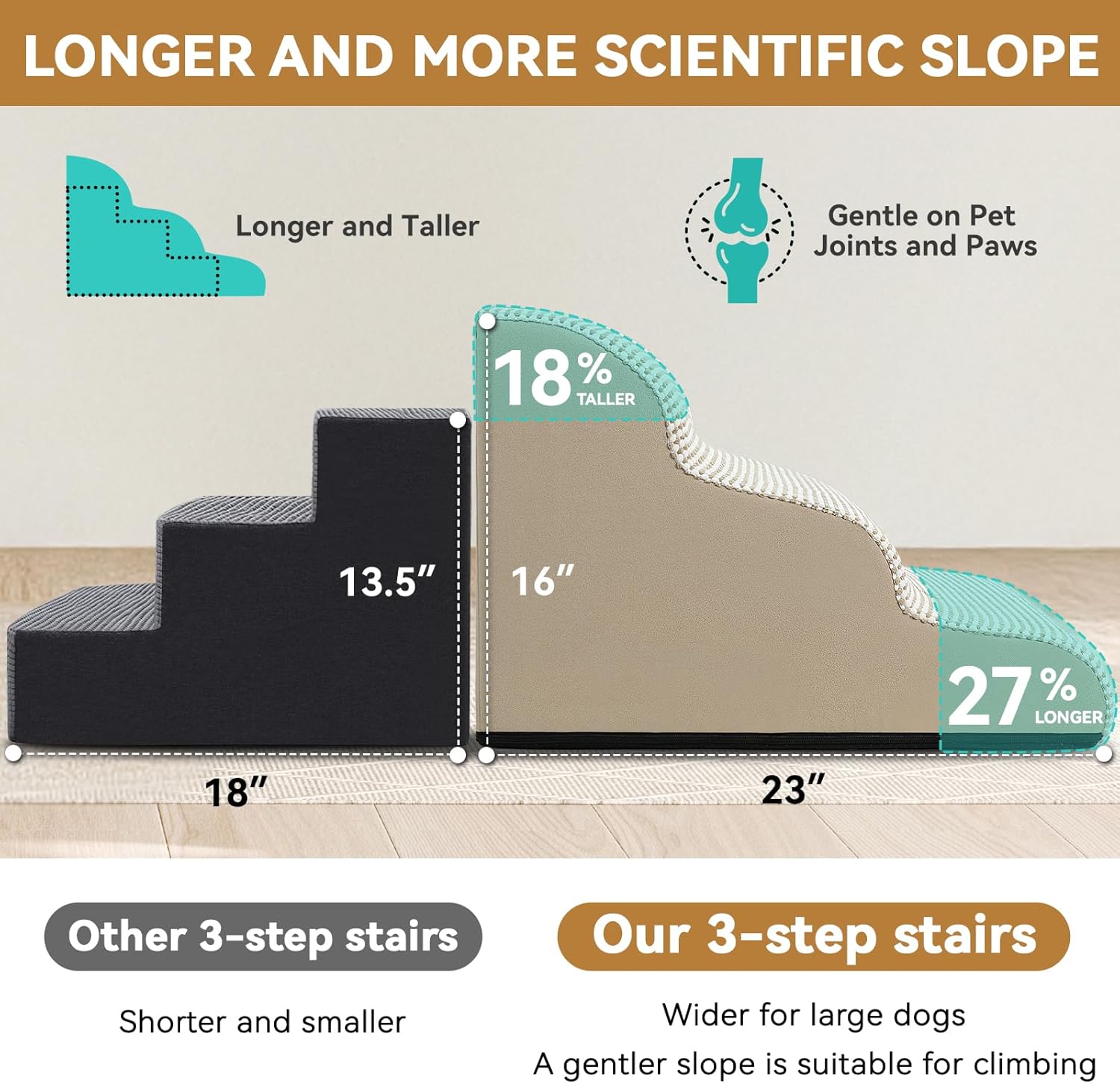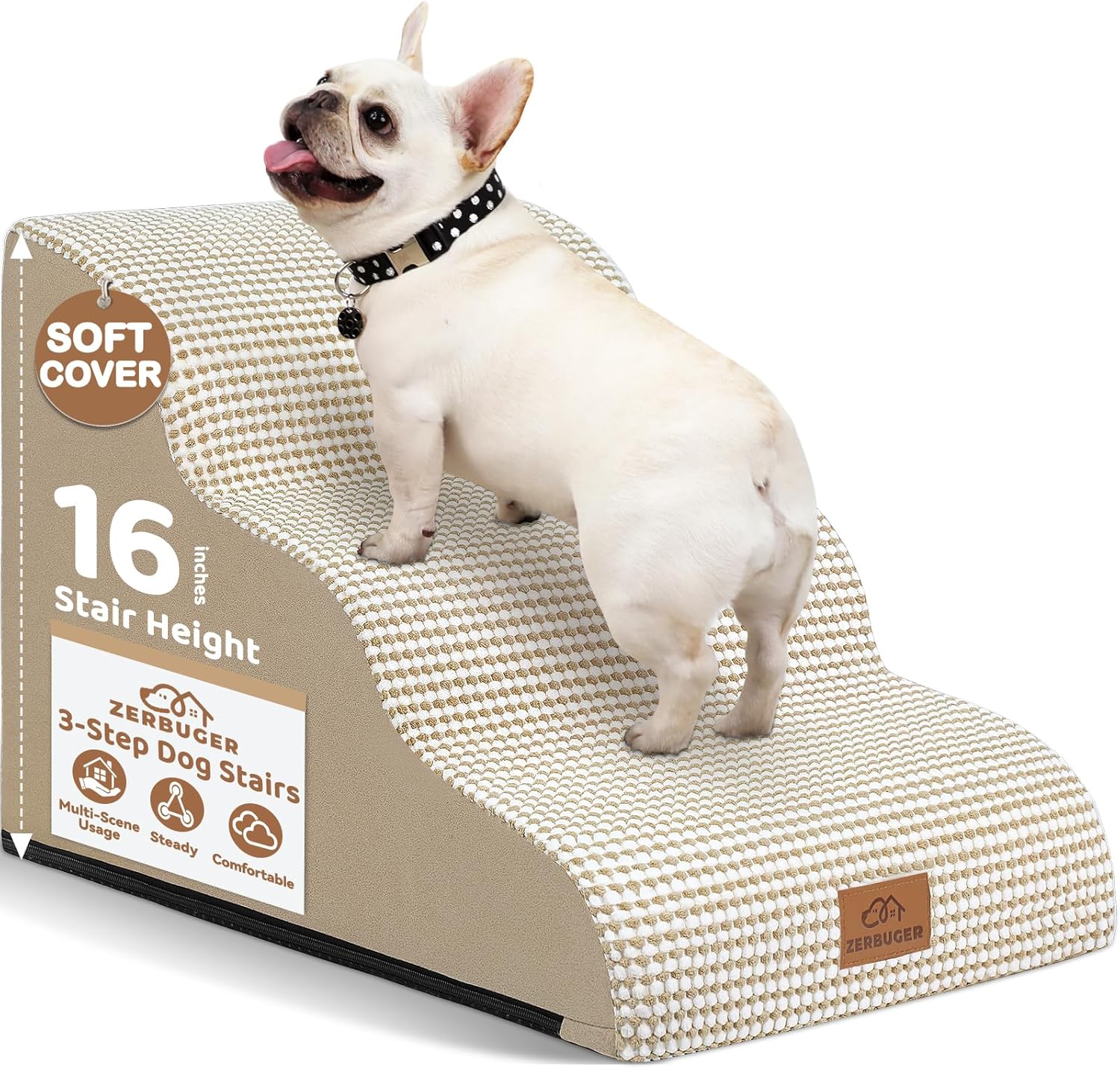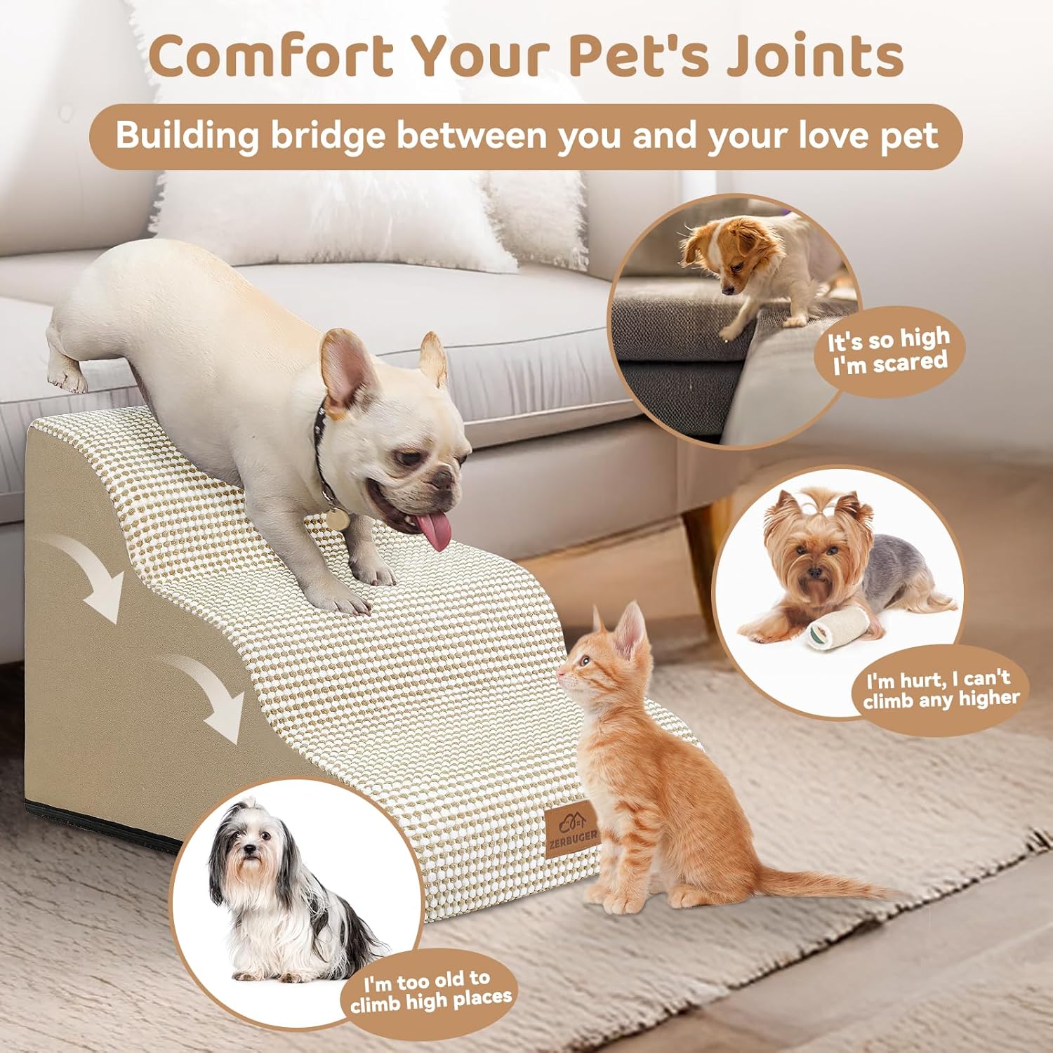 - Multi Sizes Fit Every Need: Zerbuger foam dog stair is not suitable for large dogs, please use it for pets under 50lbs! 3-steps are suitable for chairs and couches up to 20inch, 4-steps are suitable for high sofas, beds and window up to 25inch. Please confirm whether the size is suitable for your love pet first.