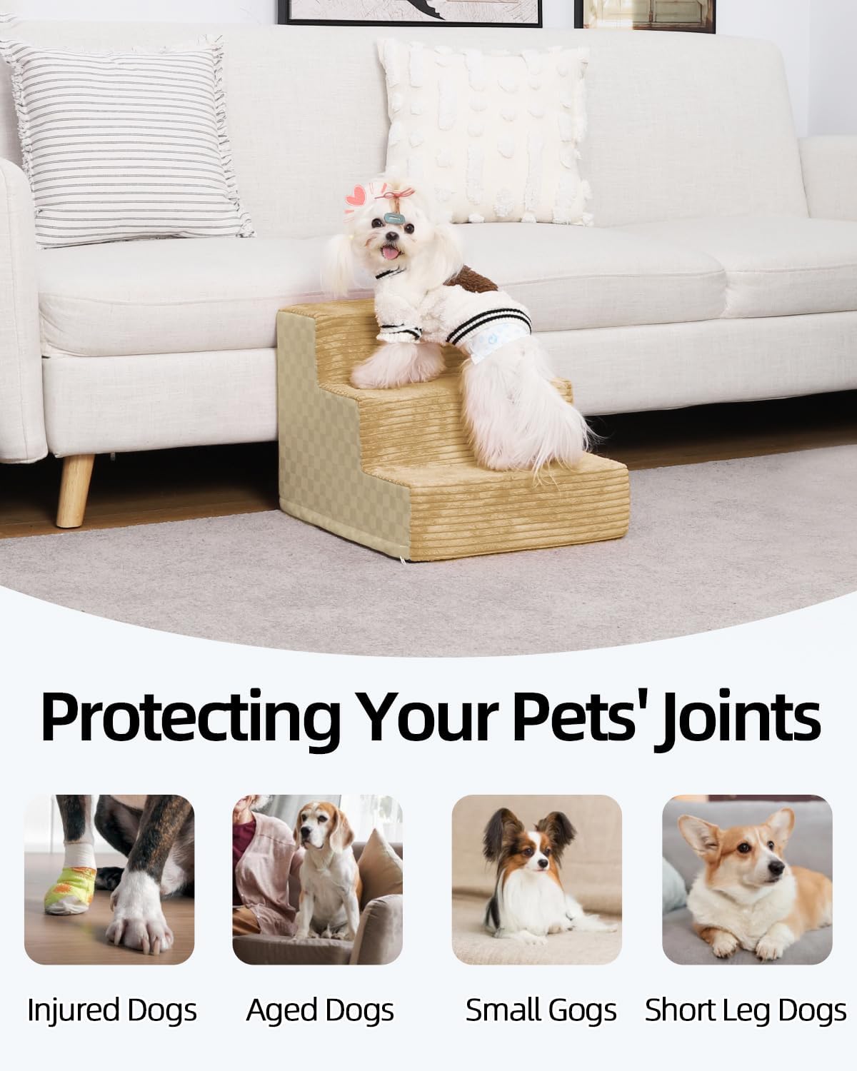 Dog Stairs for Small Dogs,17.5" H,4-Step Dog Steps for Bed and Couch with High Density Foam,Non-Slip Pet Steps for Doggy and Cat,Pet Stairs with a Washable Cover,Khaki