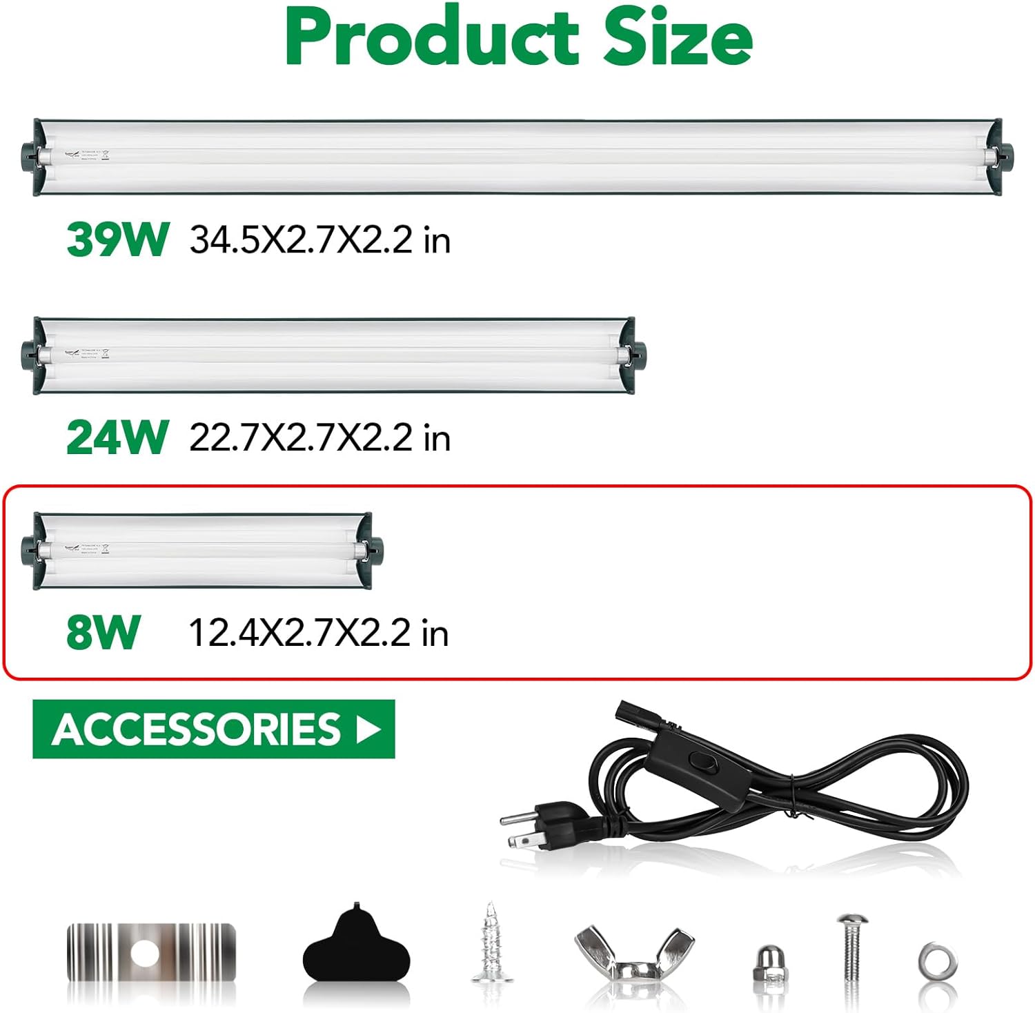 - Easy to Install and Safety - Plastic protective covers are attached to both ends of the reptile light fixture, adding flame retardant materials to ensure safety. The detachable power cable is easy to carry and install, and various mounting accessories allow the T5 uvb reptile light fixture to easily fit on a wire mesh or terrarium, and It can also be mounted on wooden tank with screws. We are equipped with a detailed instruction manual for your reference.