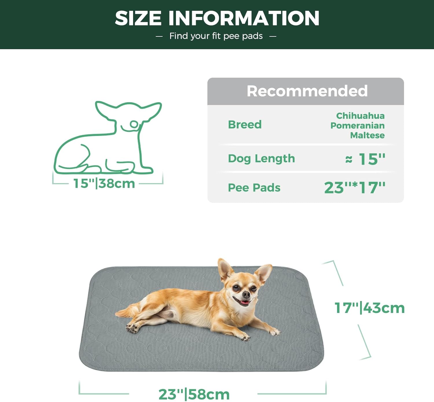 FXW Washable Pee Pads for Dogs, Puppy Pads with Super Absorbent, Specifically Designed for 24inch Cages, 23" × 17" Rectangle, Gray, 2 Packs