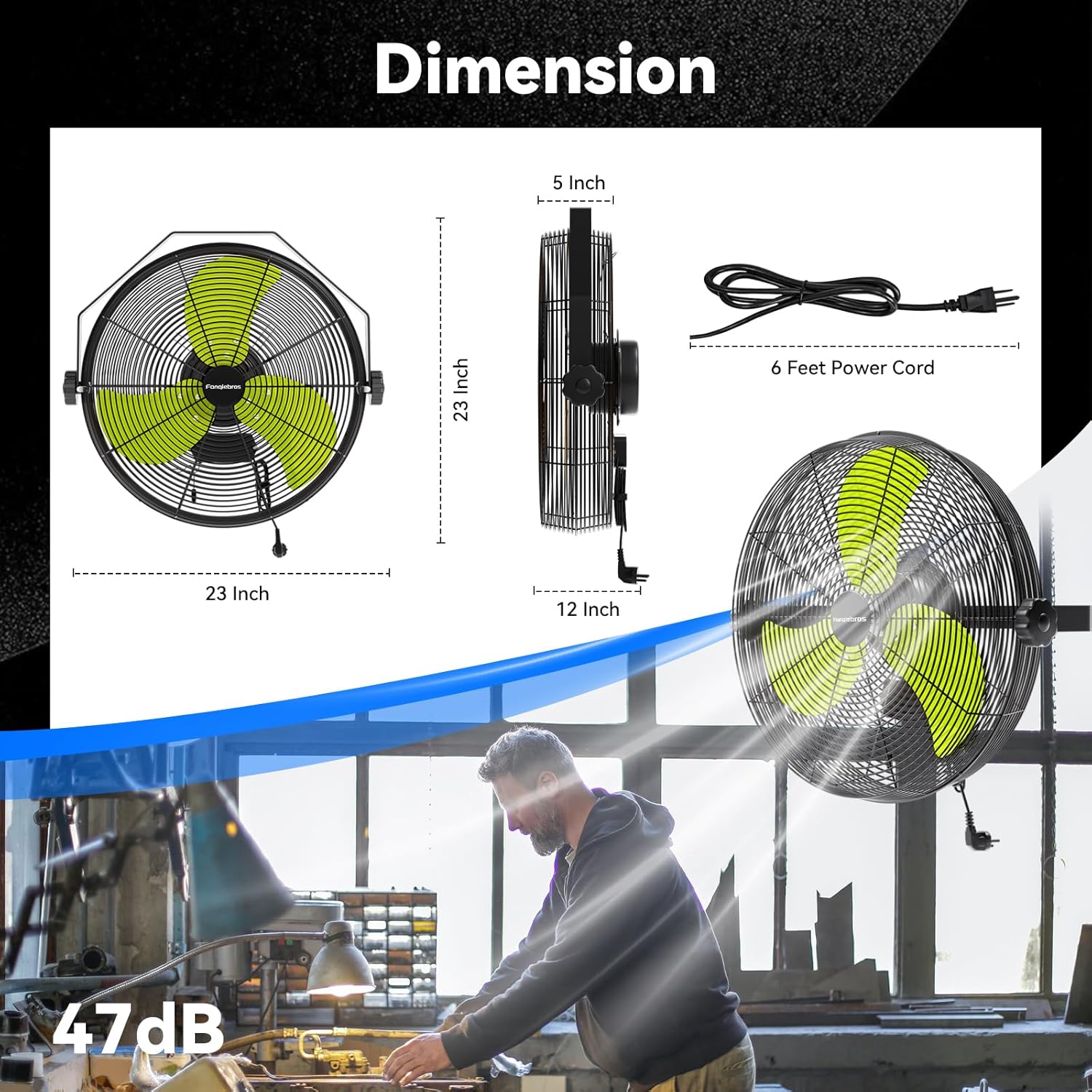 - 𝐇𝐢𝐠𝐡 𝐕𝐞𝐥𝐨𝐜𝐢𝐭𝐲 𝐀𝐢𝐫 𝐅𝐥𝐨𝐰 - Equipped with 3 adjustable wind speeds, low (3500CFM), medium (4200CFM) and high (4580 CFM), this wall fan utilizes the raw power of the pure copper motor to provide hurricane-like airflow to perfect for outdoor patio, garage, warehouse, humidity environments, dust