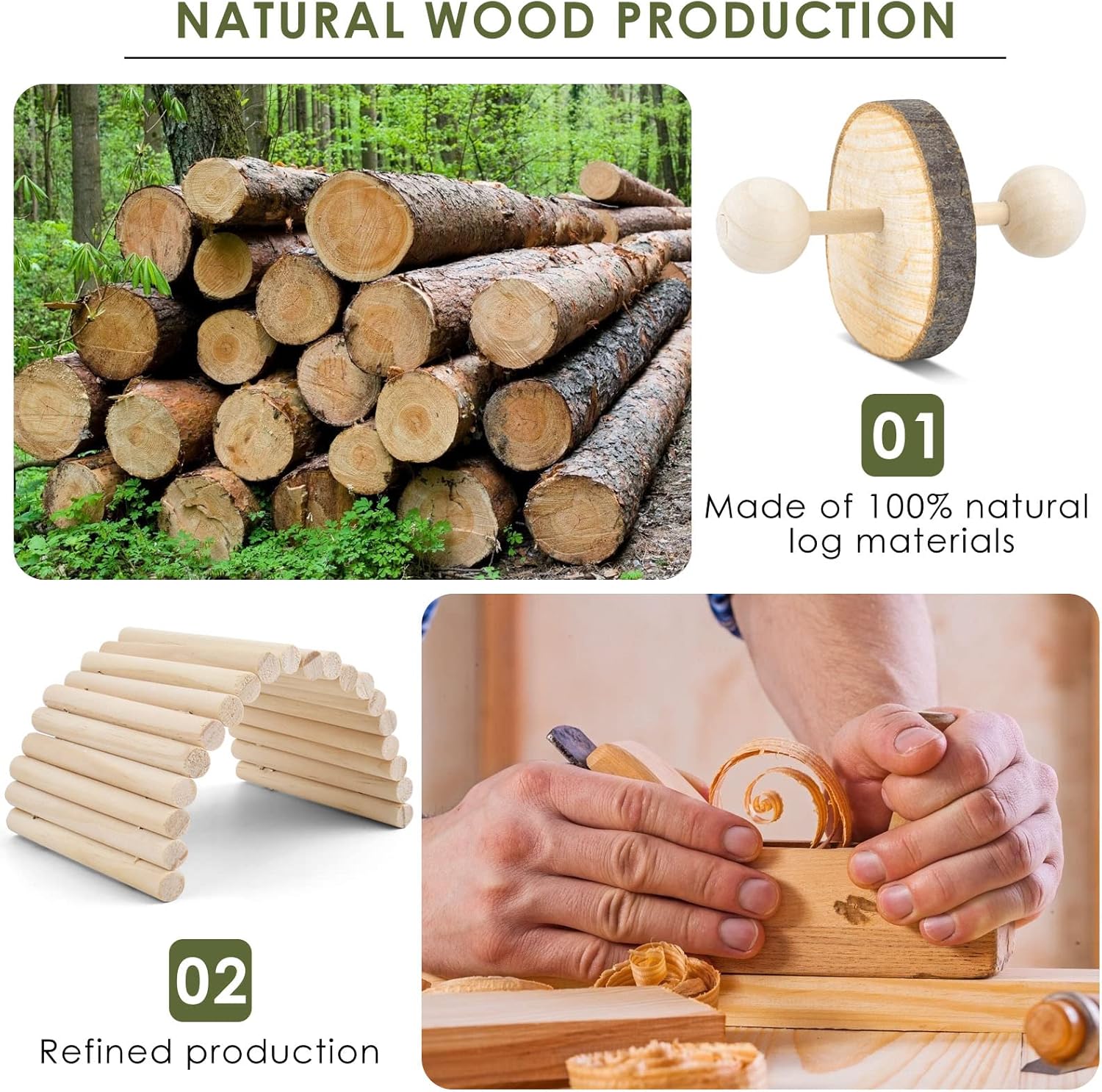 - Natural Wooden Chew Toys: Origin of natural wooden toys, selected first-class wood, natural sun drying, strict control of dehydration rate, toys with the taste of the sun, which is more comfortable to use.