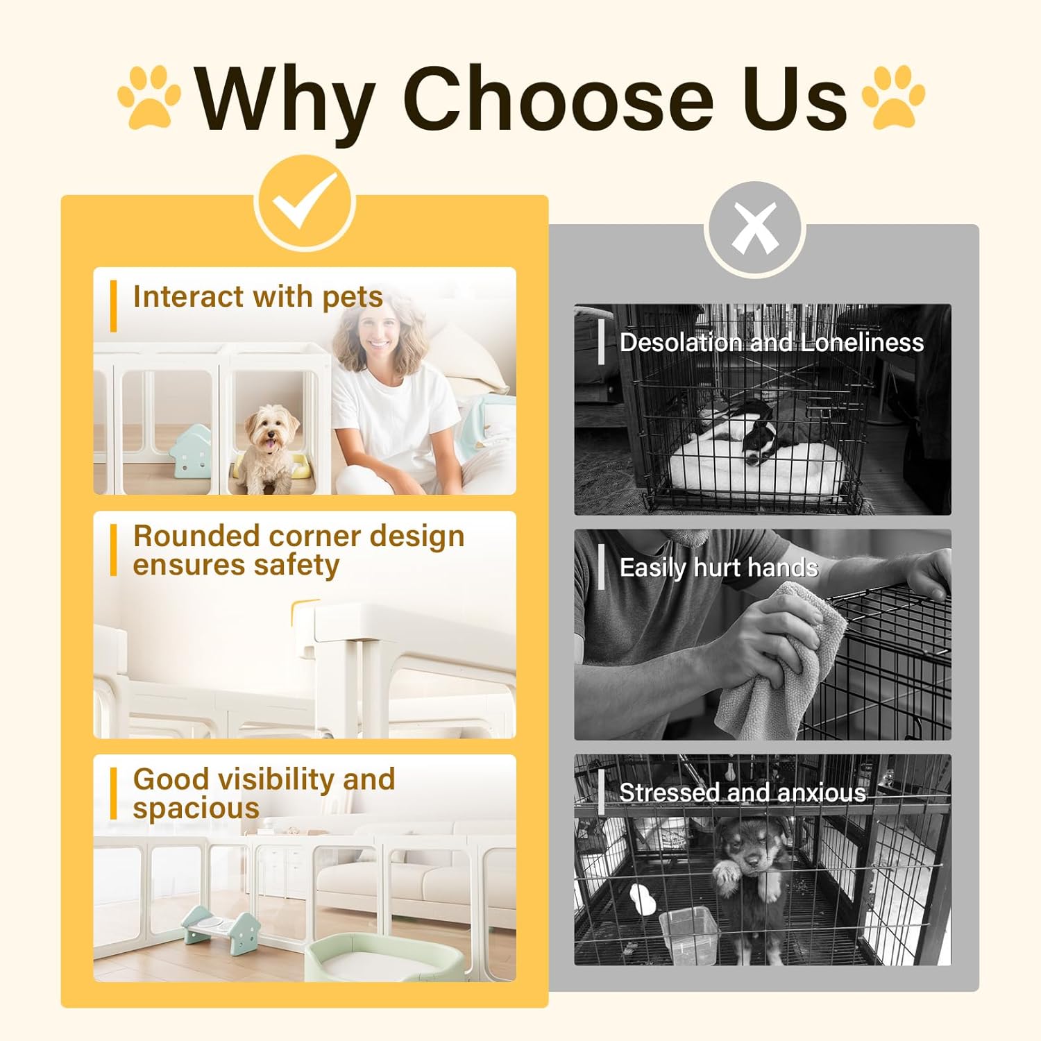 - 【Clear Dog Playpen】 Our clear dog playpen is designed with transparent acrylic panels that allow you to keep an eye on your furry friends while they enjoy their playtime. The clear design ensures maximum visibility and blends seamlessly into any home decor.