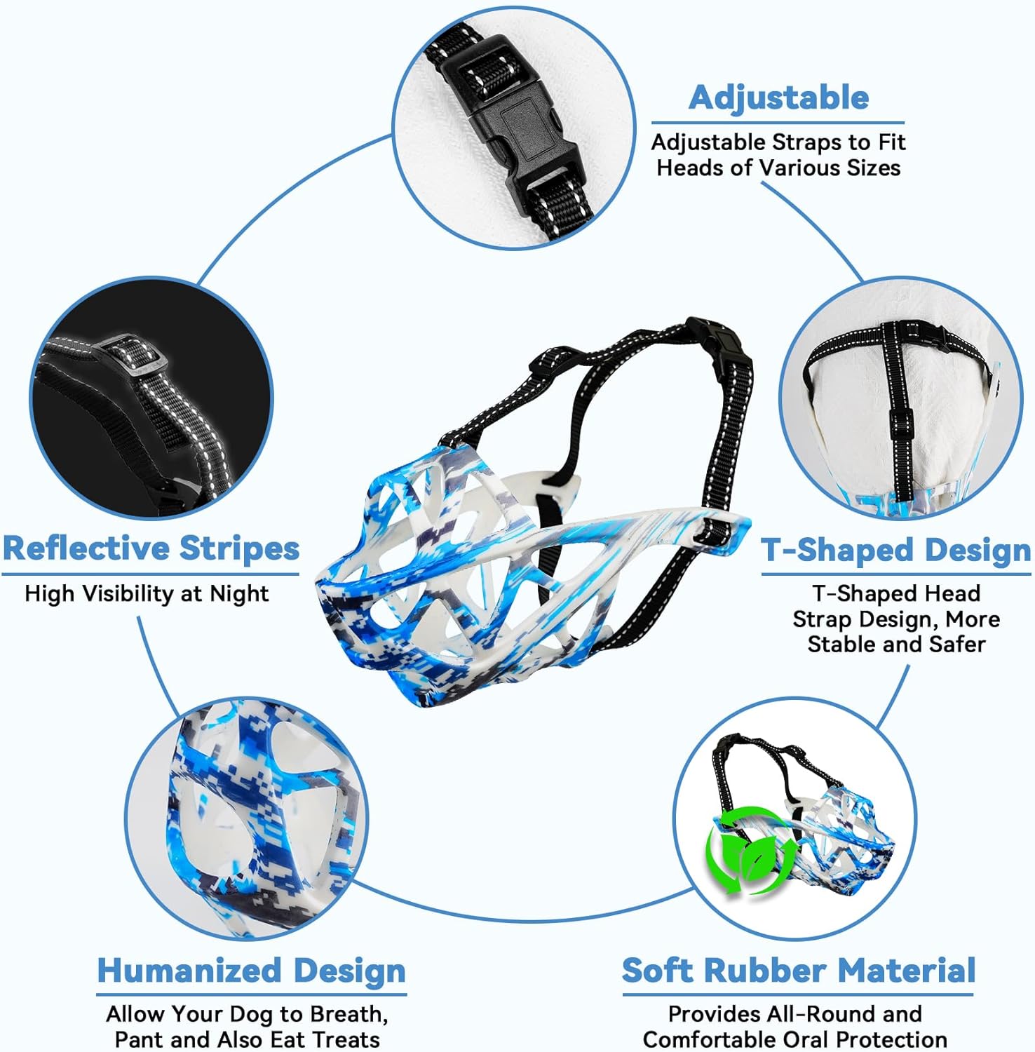 Dog Muzzle for Large Dogs, Breathable Basket Muzzles for Small, Medium and X-Large Aggressive Dog, Allows Panting Drinking, Suitable for Grooming Trimming Training (Camouflage Blue, XL)