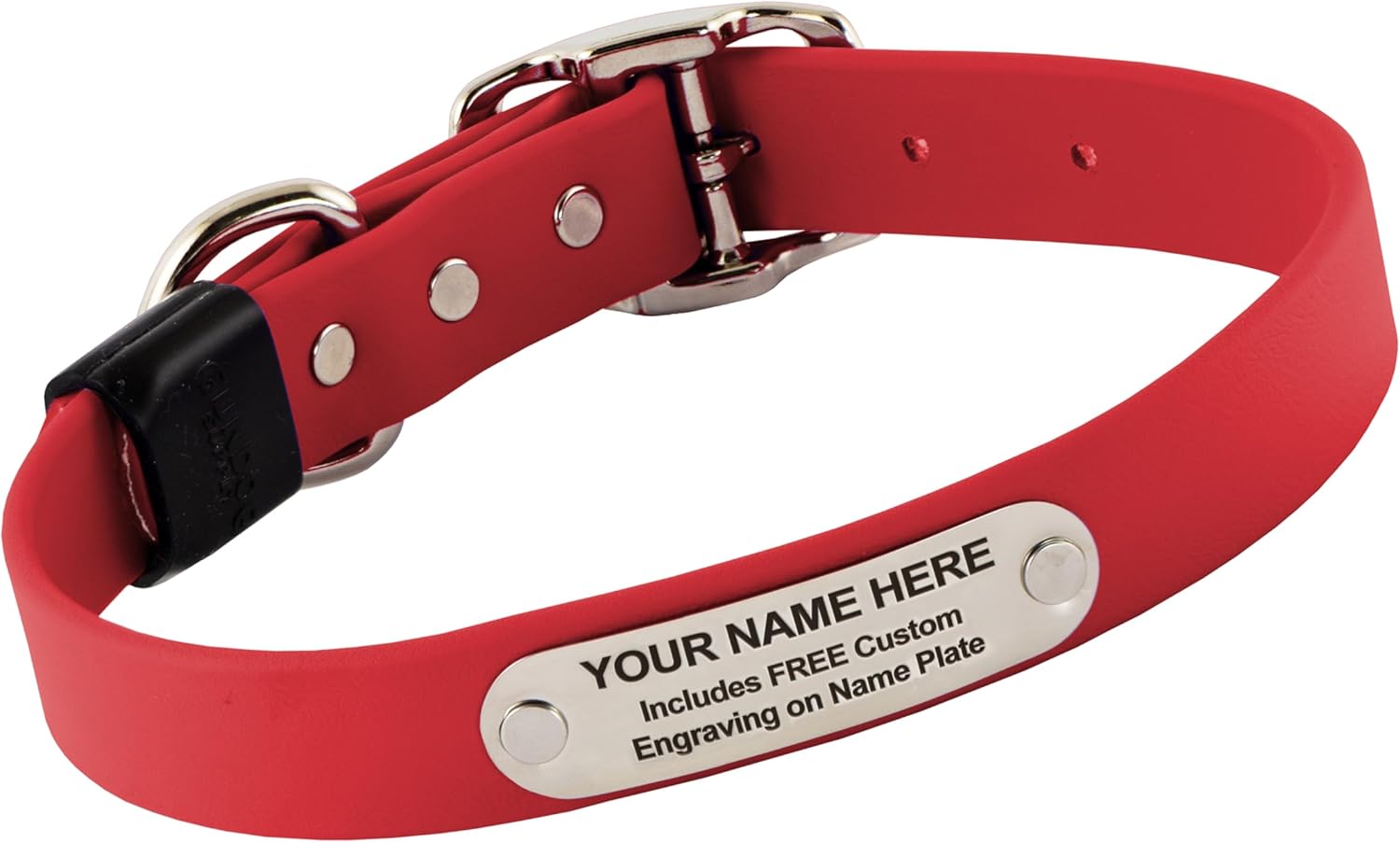 Biothane Custom Dog Collar – Waterproof, Stink-Proof Personalized Collar with Name & Phone Number – Durable, Many Sizes and Colors – Assembled in USA (Cherry Red)