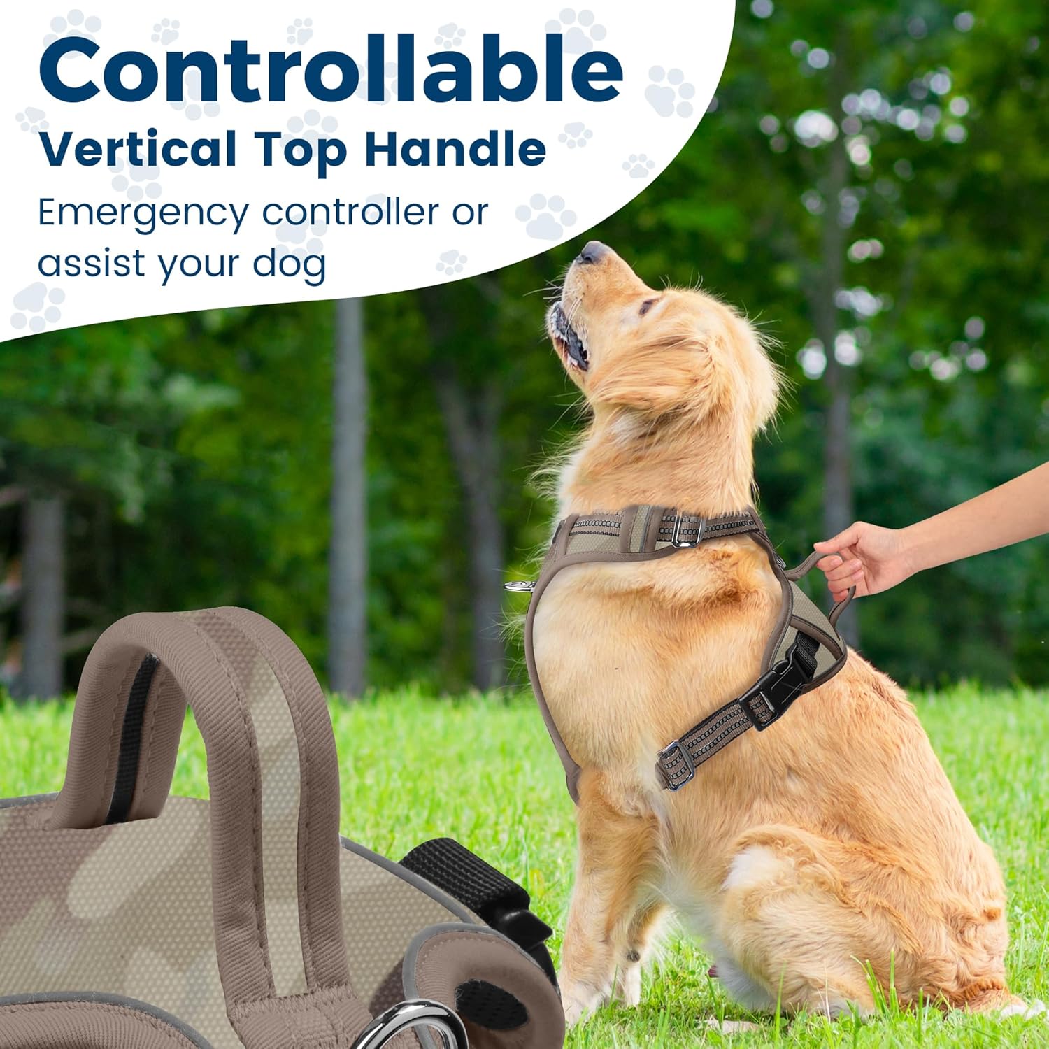 Funfox Dog Harness No Pull, Adjustable Pet Vest Harness, Super Soft Material with Vertical Handle Easy Control, Reflective Night Walking, 2 Leash Clips for Small Sized Dogs, Camo Brown, S