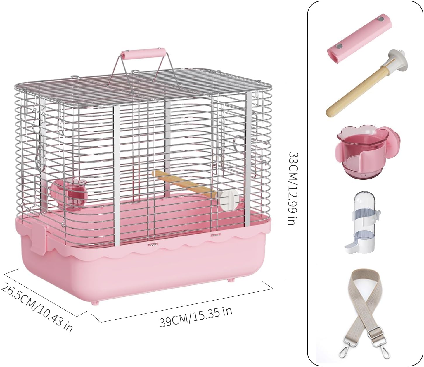 - 【Accessories Included】This travel bird cage comes with everything you need: a sturdy wood perch, removable Feeder, carrying loop, shoulder strap (for the large cage), and easy-to-follow installation instructions.