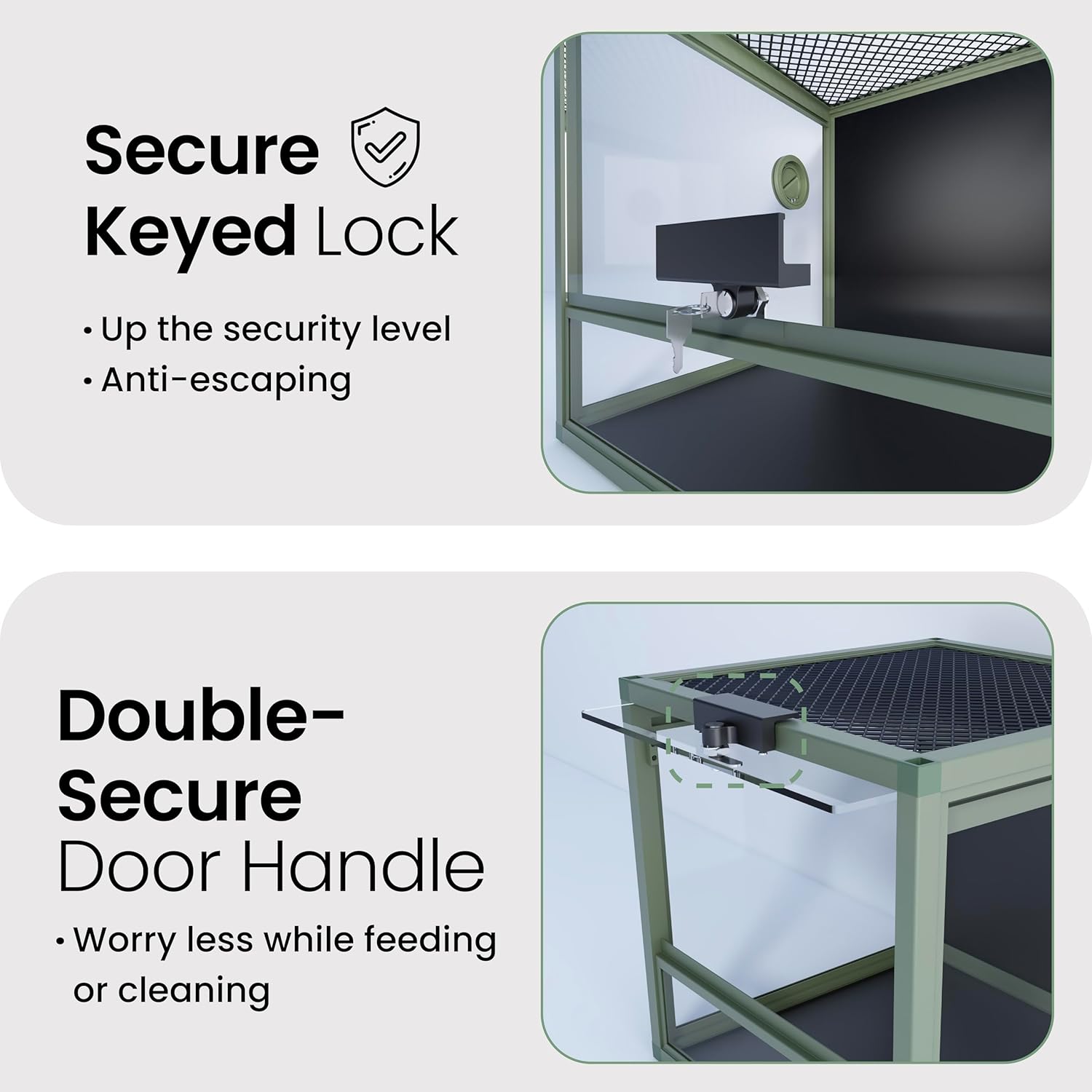 - 【Lock Included】A tempered glass door with a safety keyed lock to prevent escape and accidental opening by others. NO GAPS FOR ESCAPING with fully closed structure. Rigid tempered glass doors for extra safety.