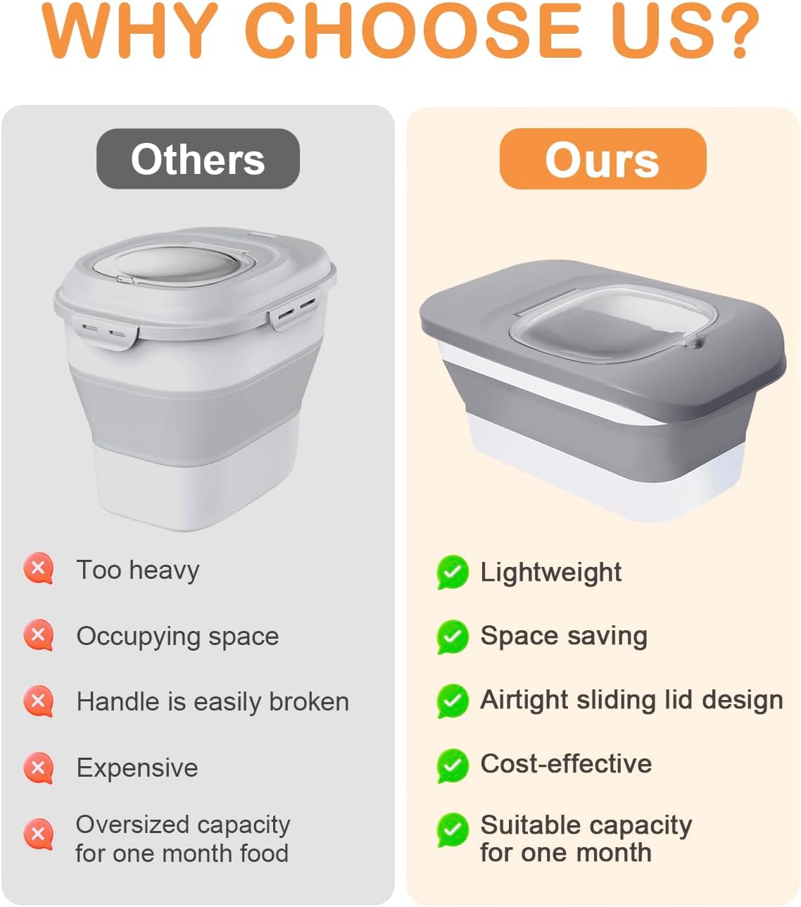 - Space Saving: Our pet food container is collapsible and can be resized to pet food storage as needed. Whether at home or on the go, it’s designed to make pet care easier and more enjoyable