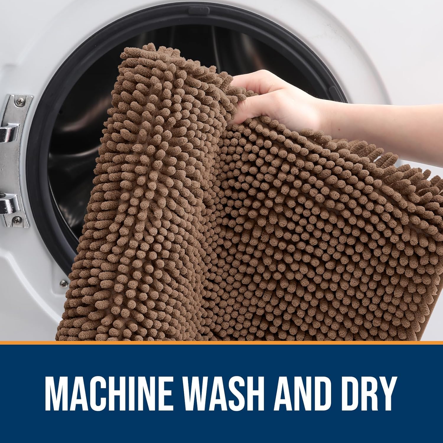 OLANLY Dog Door Mat for Muddy Paws 44x24, Absorbs Moisture and Dirt, Absorbent Non-Slip Washable Doormat, Quick Dry Chenille Mud Mat for Dogs, Entry Indoor Entryway Carpet for Inside Floor, Mocha