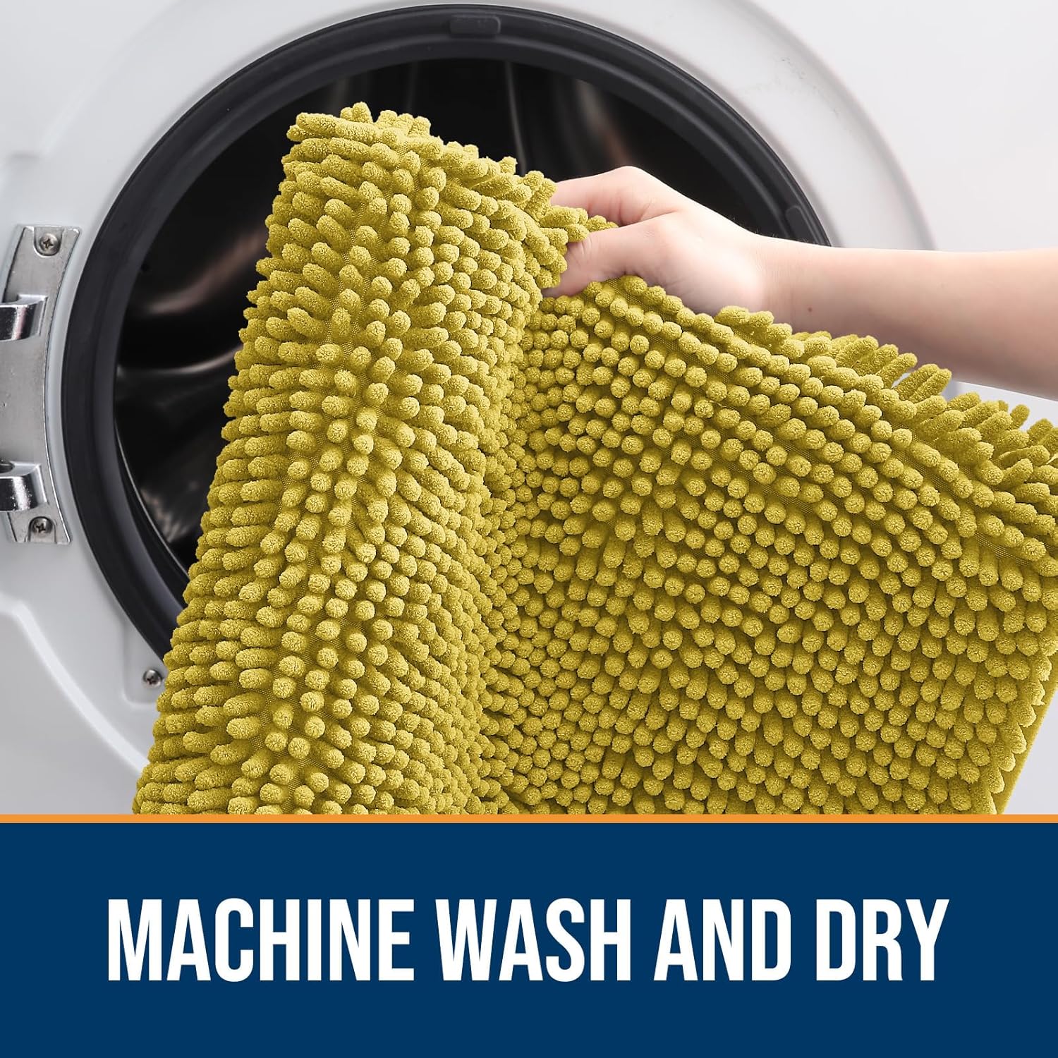 OLANLY Dog Door Mat for Muddy Paws 24x16, Absorbs Moisture and Dirt, Absorbent Non-Slip Washable Doormat, Quick Dry Chenille Mud Mat, Entry Indoor Entryway Carpet for Inside Floor, Mustard Yellow