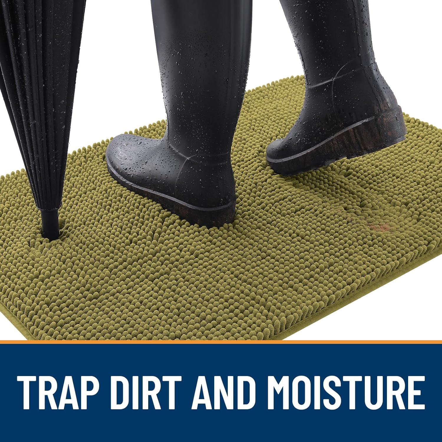 OLANLY Dog Door Mat for Muddy Paws 36x24, Absorbs Moisture and Dirt, Absorbent Non-Slip Washable Doormat, Quick Dry Chenille Mud Mat, Entry Indoor Entryway Carpet for Inside Floor, Willow Green