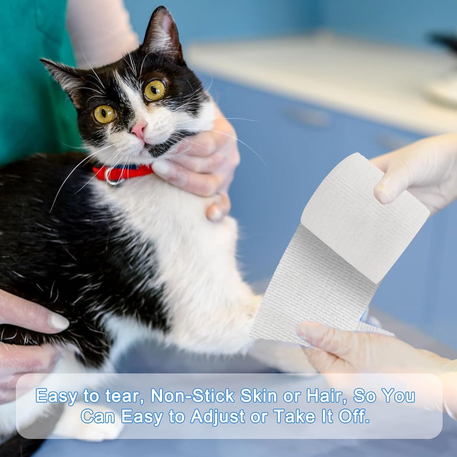 - 【No Residue & Effortless Application】Unlike ordinary tapes, this self-adhesive bandage sticks only to itself, not skin or hair. Easily tear by hand without scissors—perfect for quick fixes during sports, workouts, or pet emergencies. No pins or clips needed!