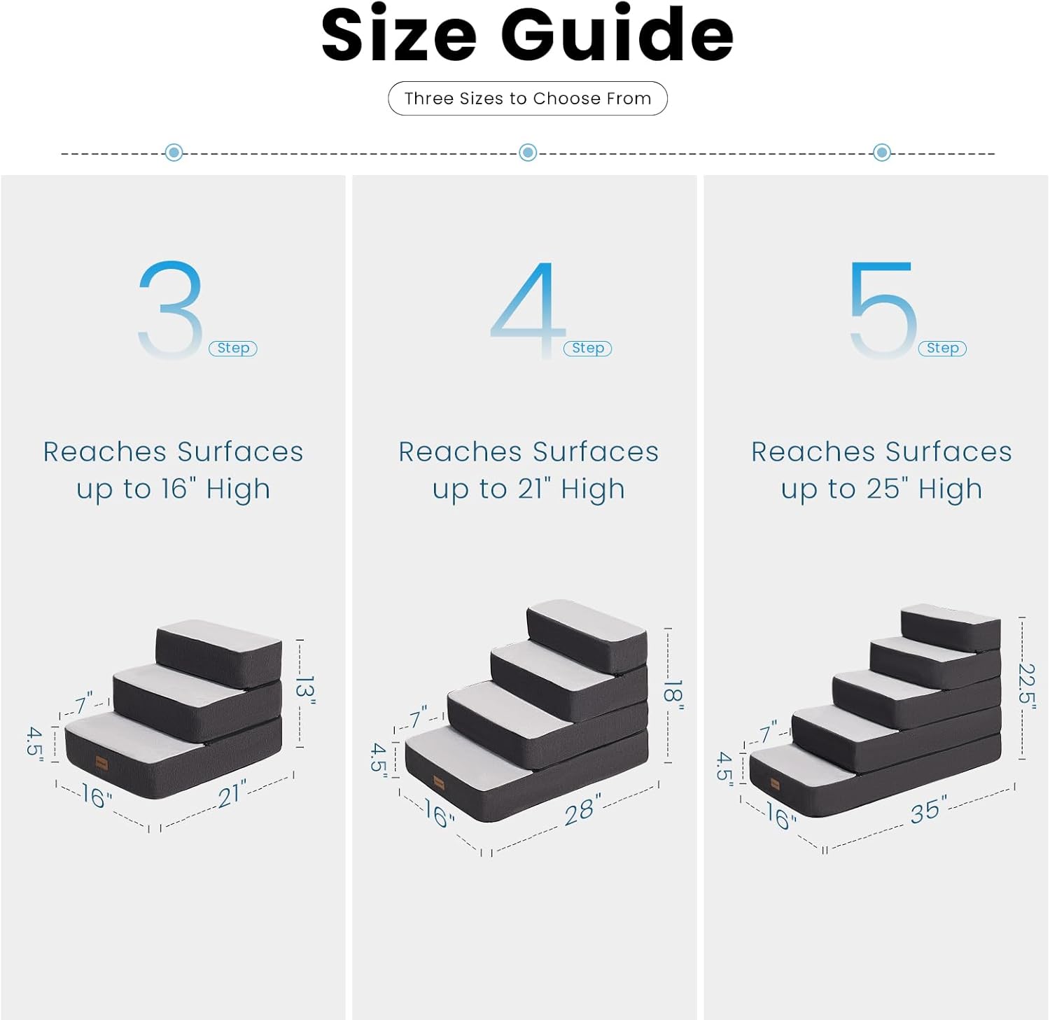 - Non-Slip Steps: 35D ultra-firm foam prevents wobbling. Anti-slip fabric on every step grips floors and pet paws, even when layers are split.
